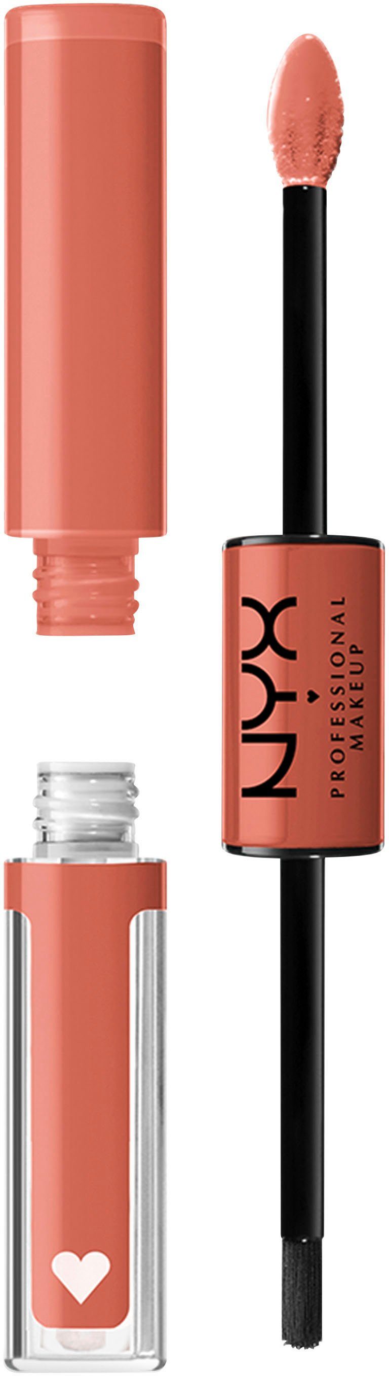 Anwendung | Mit dem Shine Loud High Pigment Lip Shine in der Farbe Cash Flow von NYX Professional Makeup gelingt ein sattes Lippen-Makeup in hellem Rosa für jeden Anlass. Um die hochpigmentierte Farbe präzise auf die Lippen aufzutragen, diese zunächst mithilfe des speziell geformten Applikators entlang der Lippenkontur verstreichen, schließlich auf die Flächen geben. Nach einer kurzen Trockenzeit wird dann der dazugehörige Top-Coat am anderen Ende des Sticks aufgetragen. Erst dadurch wird die Farbe für bis zu 16 Stunden versiegelt und haltbar gemacht und das Makeup erhält sein atemberaubendes glossy Finish. |