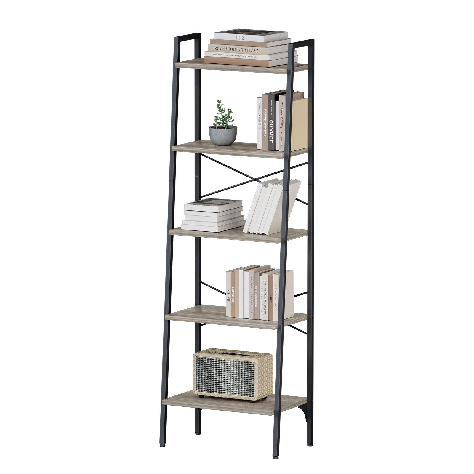 5-stufiges Standregal aus Stahl & Holzoptik | Schmales Leiterregal 172 cm | Vielseitiger Stauraum für Wohnzimmer, Bad, Büro & Pflanzen