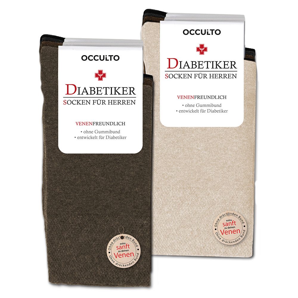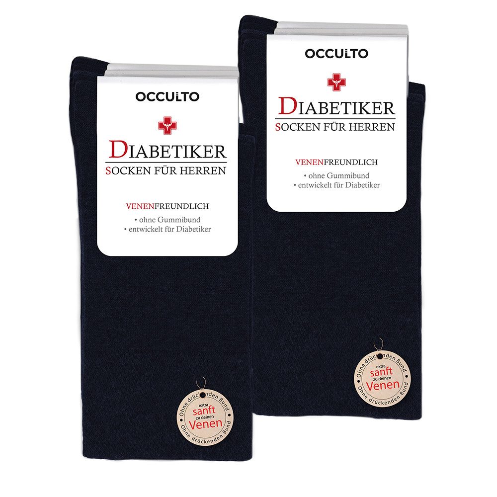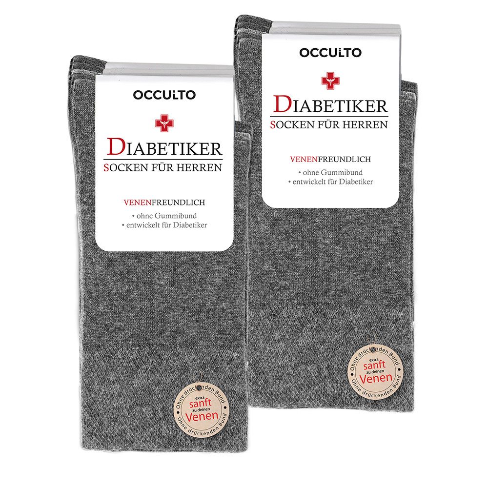 Unsere Diabetiker Socken bieten höchsten Tragekomfort und bestehen aus einem Baumwoll Polyester Gemisch. Diese Materialkombination vereint den angenehmen Tragekomfort und Feuchtigkeitsverhalten von Baumwolle mit der Atmungsaktivität und Strapazierfähigkeit von Polyester. Elasthan sorgt für Dehnbarkeit und einen bequemen Sitz. Speziell für Diabetiker entwickelt, verzichten wir bewusst auf drückende Nähte und einen engen Gummibund, um optimale Venenfreundlichkeit zu gewährleisten. Der hohe Baumwollanteil fördert ein angenehmes Fußklima. Die perfekte Wahl bei erhöhtem Komfortbedarf, empfindlichem Gewebe oder arteriellen Durchblutungsstörungen.