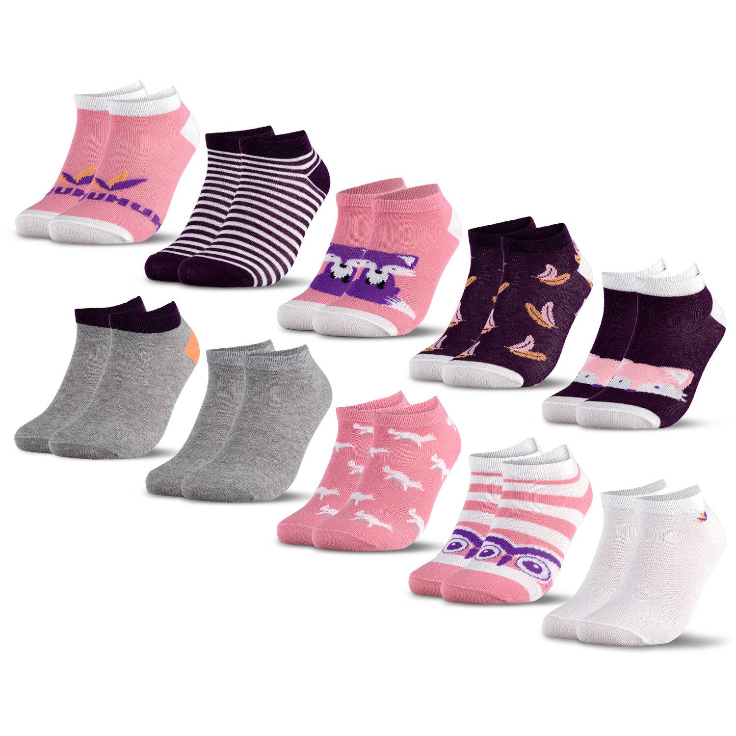 Unsere Kinder-Sneakersocken bestehen aus einem klassischen Baumwoll-Polyamid-Gemisch, das die besten Eigenschaften beider Stoffe vereint. Die Socken bieten hohen Tragekomfort dank einem Baumwollanteil von 75%, der sie kuschelig weich und angenehm zur Haut macht. Das Design besticht mit kräftigen Farben und fröhlichen Motiven, die auch nach mehrmaligem Waschen nicht ausbleichen. Der leicht beigemischte Kunstfasermix sorgt für die nötige Strapazierfähigkeit des Materials. Wenn Du farbenfrohe Alternativen in hochwertiger Baumwollqualität für Deine Kids suchst, sind unsere Socken die erste Wahl.
