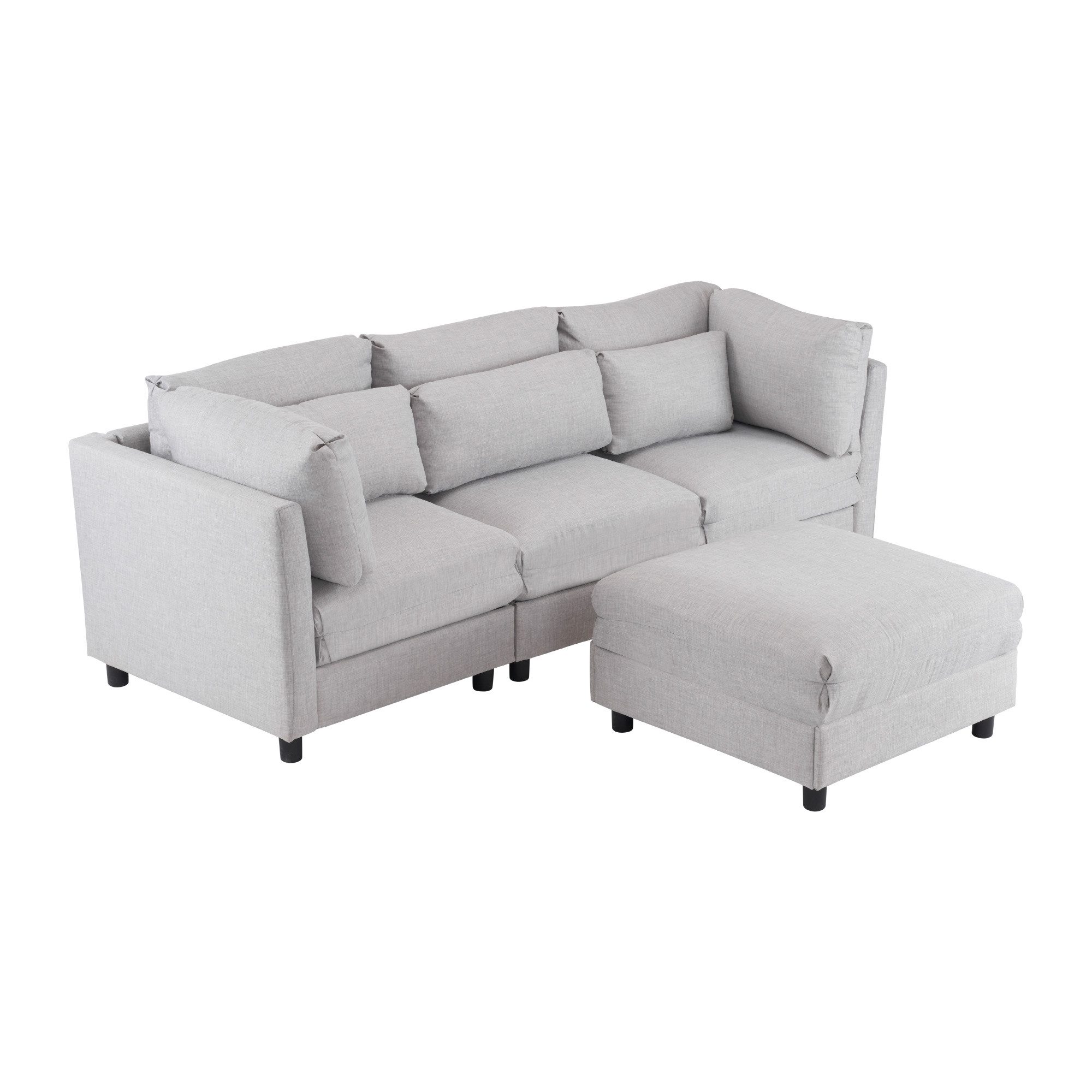 Odikalo Ecksofa Dreisitzer-Sofa Polster Fußhocker L-förmig Armlehnenkissen Grau/Braun