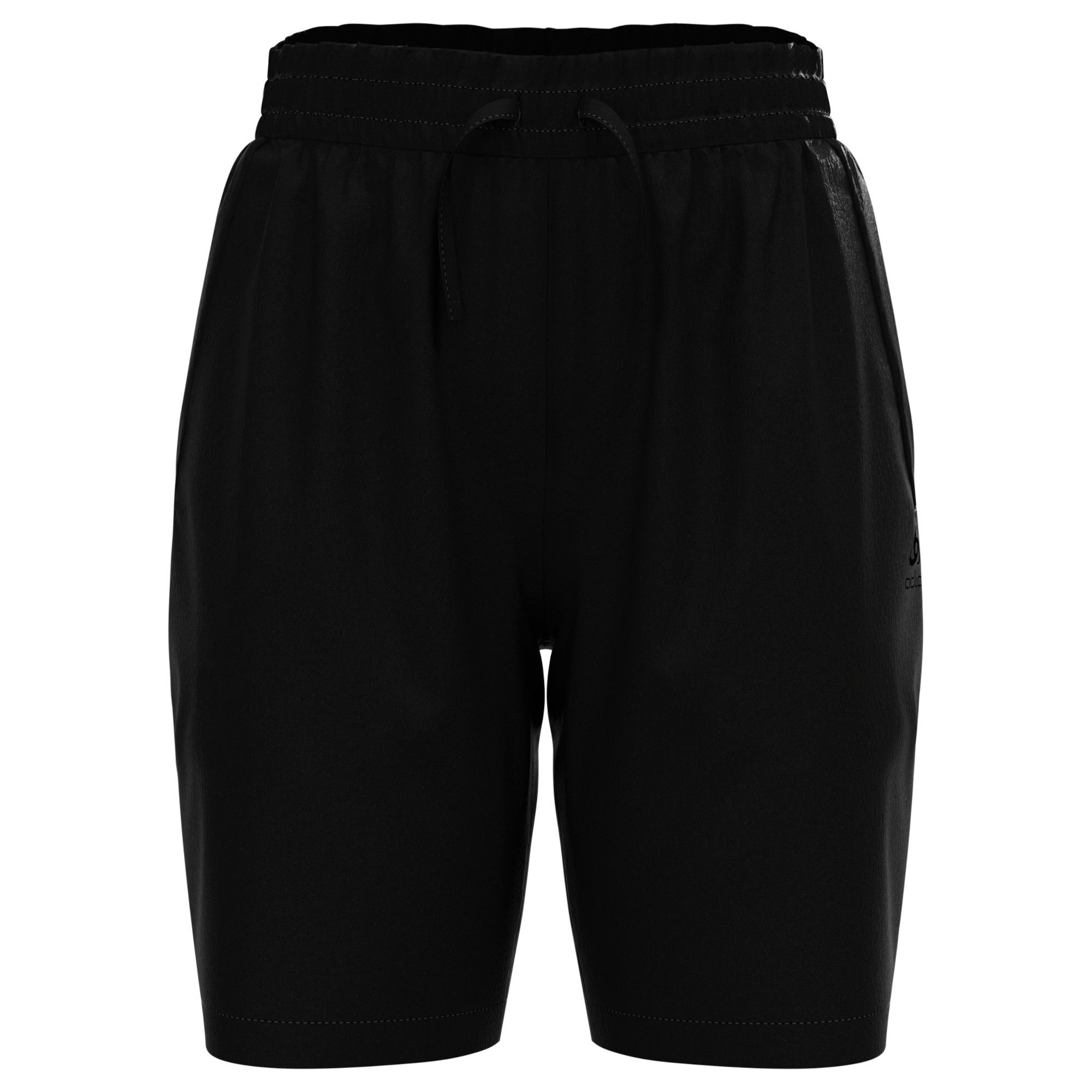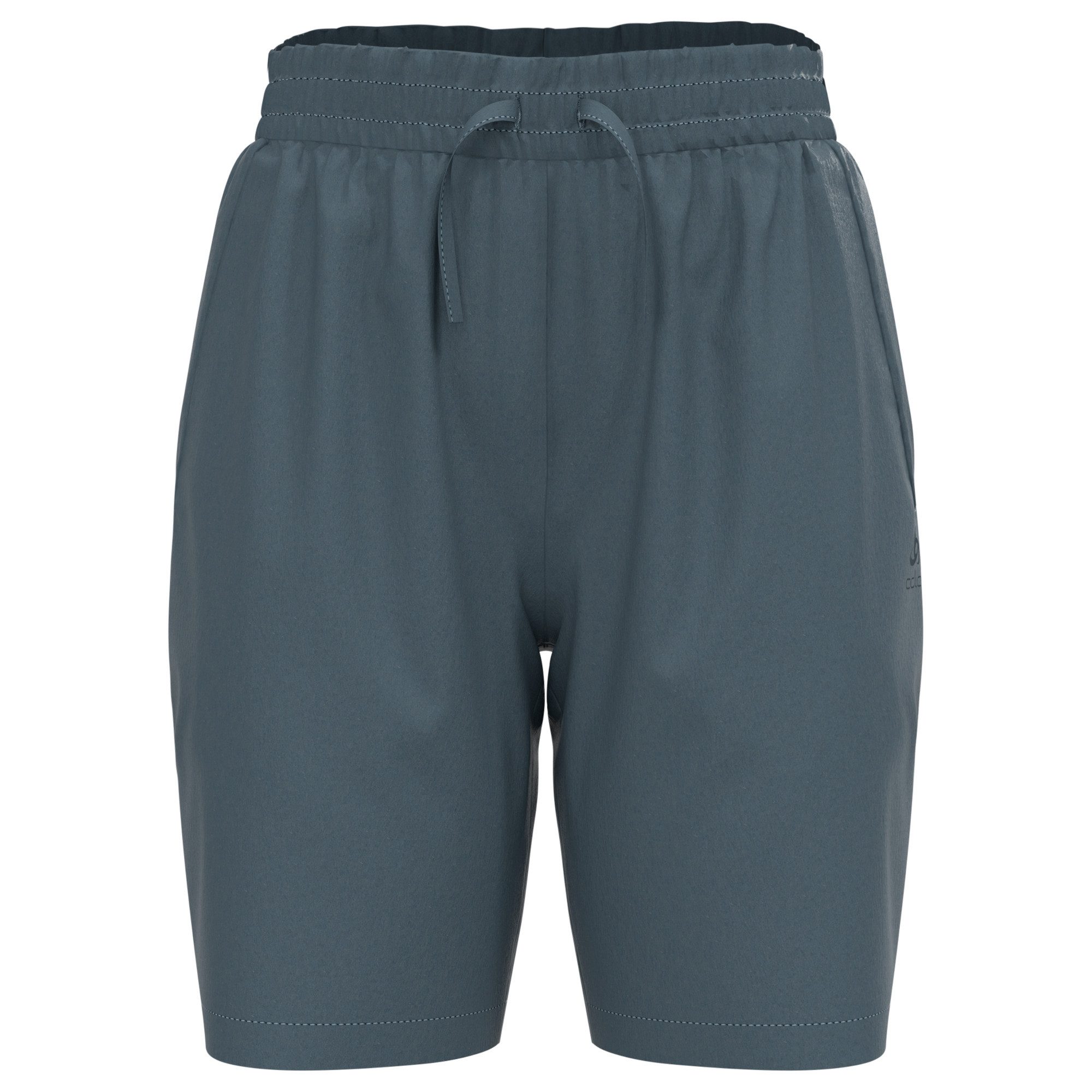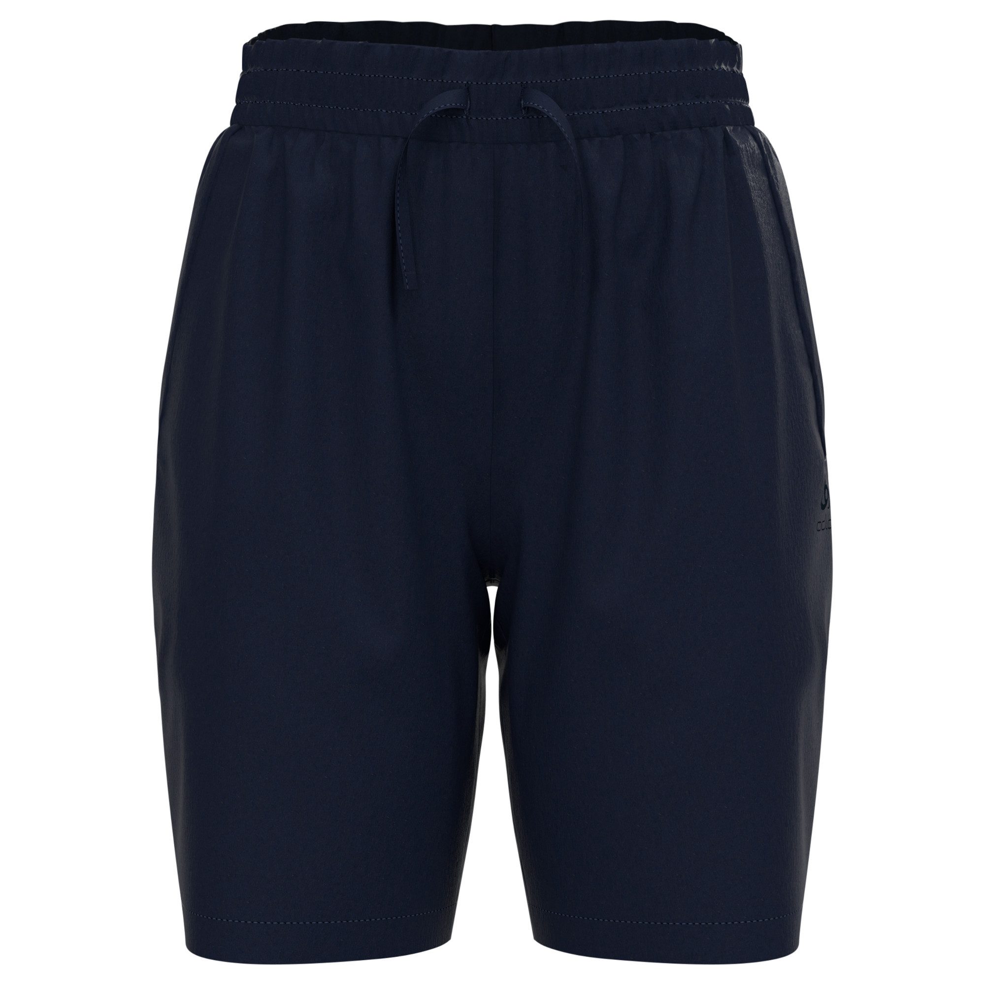Odlo Damen Wandershorts ESSENTIAL. Die Essentials Wandershorts bestehen aus teilweise recyceltem, wasserfestem Material und eignen sich hervorragend für Wanderungen, Stadtbummel und alles dazwischen. Diese superleichten und besonders dehnbaren Shorts wirst du im Sommer nicht mehr missen wollen. In dem breiten Bund verbirgt sich ein Kordelzug, damit nichts rutscht. Und wenn dich ein Schauer überrascht? Keine Sorge: Das Aussenmaterial aus 95 Prozent recyceltem Polyamid ist mit einer CO-DWR-Imprägnierung versehen, an der leichter Regen einfach abperlt. Eingrifftaschen und ein dezentes, farblich abgestimmtes Logo runden den Look ab. Wandershorts mit Athletic-Fit für grenzenlose Outdoor-Abenteuer. Material: 95% Polyamid. 5% Elasthan