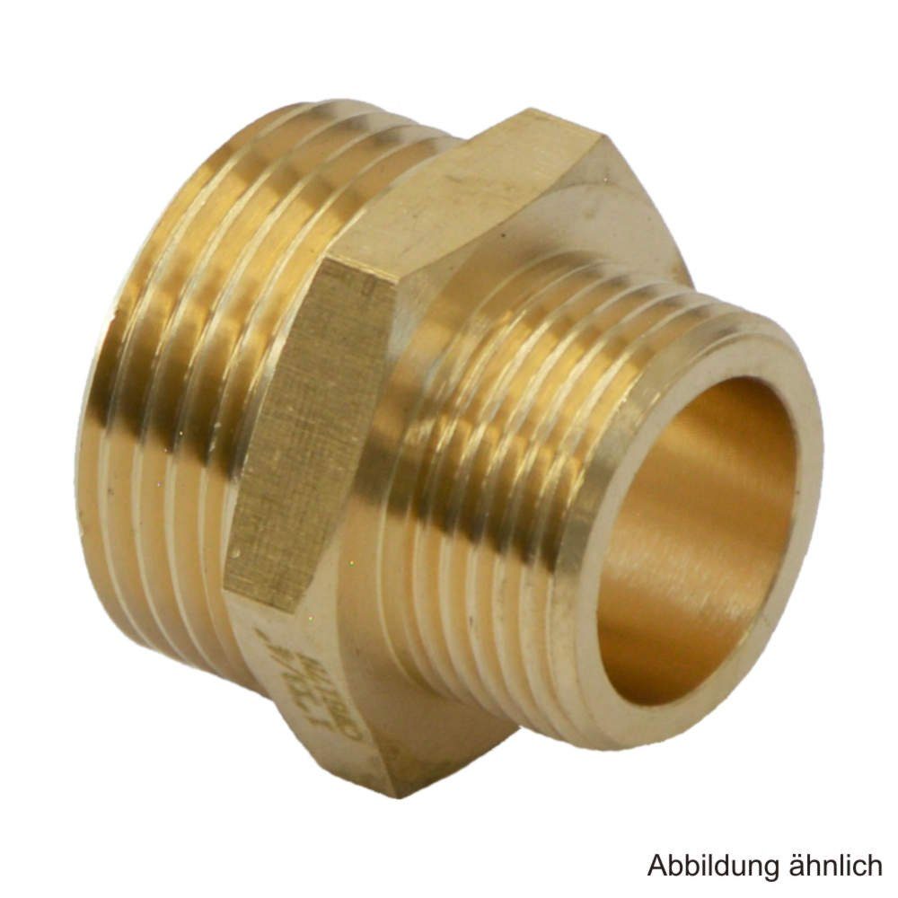 Rotguss Doppelnippel mit Gewinde, reduziert, breite Ausführung, 1/2" x 3/4" - Eigenschaften: Das Reduzierstück mit breiter Auflagefläche ist ideal geeignet für flachdichtende Verbindungen, beispielsweise zum Einsatz bei Edelstahlwellrohren. Werkstoff: Rotguss Verbindung: Schraub-Gewinde (Außengewinde) passend für: DN16, DN12 1/2" AG x 3/4" AG Bitte beachten Sie, dass dieser Artikel über keine DVGW-Zulassung verfügt! RGDNRBA12