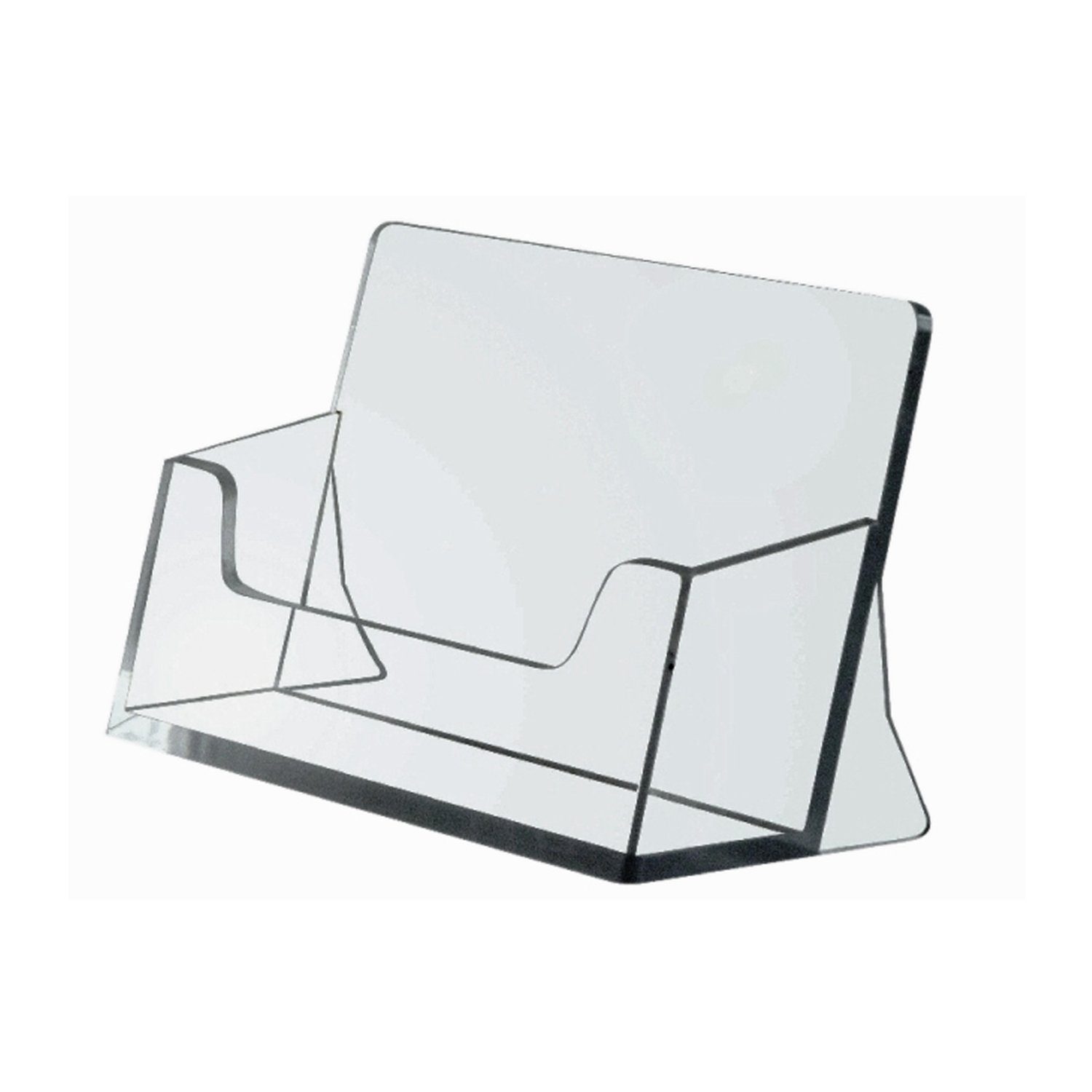 Unser Visitenkartenhalter überzeugt durch seine formschöne außergewöhnliche Verarbeitung und der glänzenden durchsichtigen Optik. Darüber hinaus ermöglicht der Visitenkartenständer Ihnen kreativ zu werden, durch anbringen individueller Logos etc. Des Впередen bietet unser glasklarer Ständer eine ideale sauber geordnete Werbefläche zum Präsentieren von Printwerbung, da das glasklare Kunststoff nicht vom Inhalt ablenkt. Ein weiterer Pluspunkt der von Ihnen möglicherweise zu Nutzen gemachten Werbefläche, ist die leichte Neigung des Transparenten Aufstellers. Dieses „Feature“ wurde zu Gunsten des besseren Blickfeldes erarbeitet. Ihre Visitenkarten werden somit aufmerksamkeitsstark, sowie platzsparend in den Fokus Ihrer Kunden gerückt. Zudem kommt, dass unser Visitenkartenhalter ebenfalls einwandfrei auf allen Ebenen Flächen nutzbar ist. Durch das sauber verarbeitete Polystyrol wird den Seiten, welche sich nach hinten zu den funktionalen Stützen ziehen, nicht nur optimale Standfestigkeit geboten, sondern auch ein durchaus sehenswertes Design.