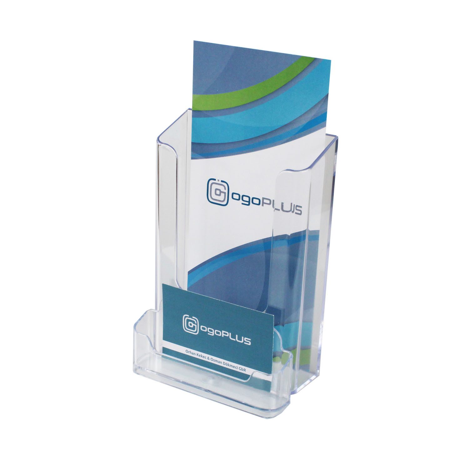 Prospekthalter DIN lang mit Visitenkartenhalter – ideal für Flyer, Broschüren und Visitenkarten im Büro oder auf der Messe