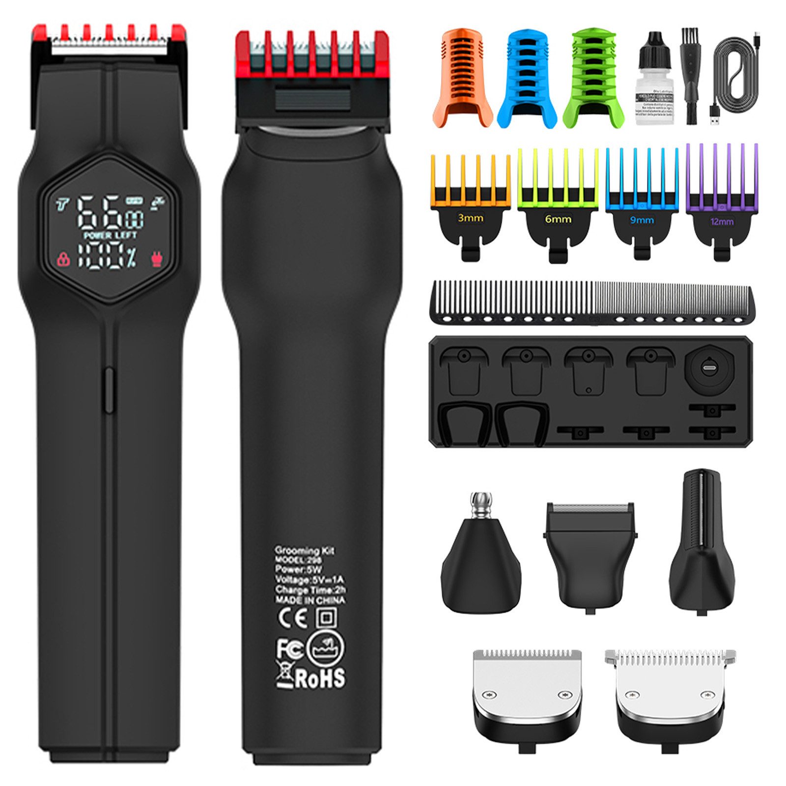 Lieferumfang | Begrenzungskamm * 5 Körperhaar-Begrenzungskamm * 3 Typ-C-Ladekabel Ladestation Kamm Reinigungsbürste |