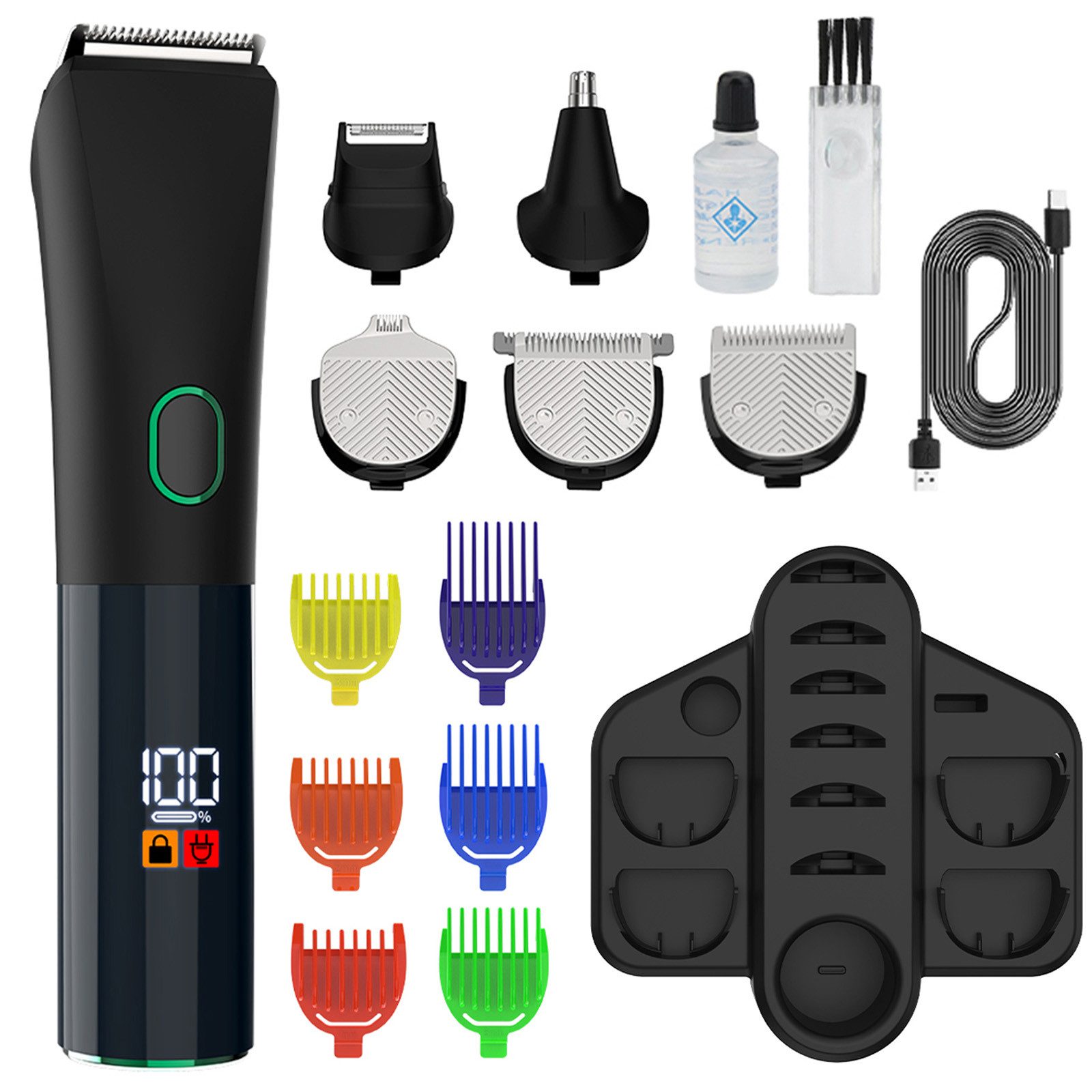 Das Komplett-Set enthält sechs präzise Trimmeraufsätze für Bart, Kopfhaare, Nasenhaare und Augenbrauen.