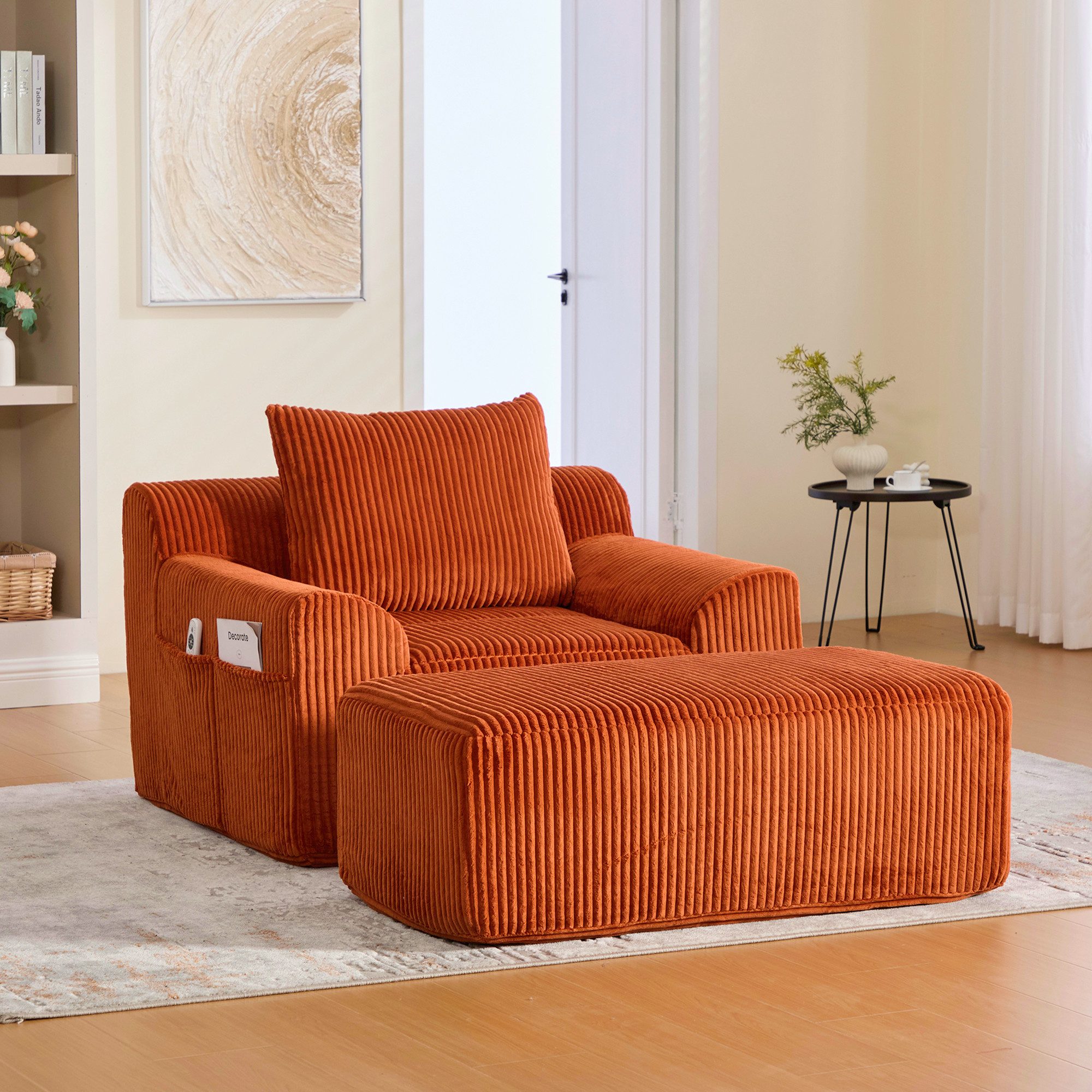 Der Übergroße Sofasessel aus Kordsamt überzeugt durch minimalistisches Design mit gestreiftem Stoff. Er fügt sich stilvoll in Wohnzimmer, Schlafzimmer oder Büro ein und bietet einen tiefen, komfortablen Sitz für lange Entspannungsphasen.