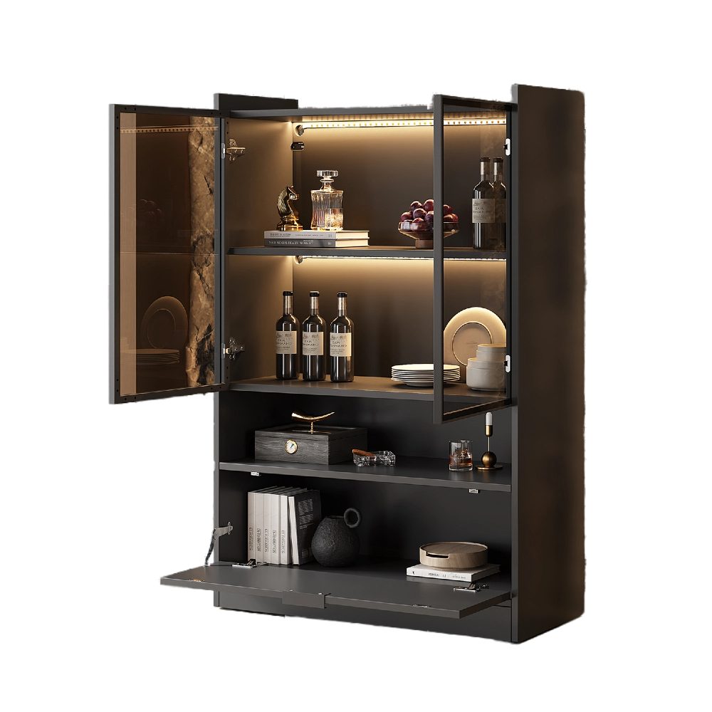Glastür drücken + Schranktür herunterziehen – Innovativ und einfach zu bedienen für schnellen Zugriff auf den Inhal