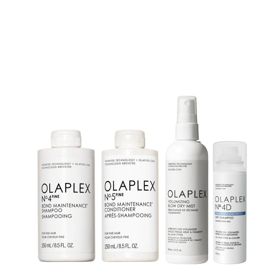 Pflege. Schutz. Volumen. – Das ultimative Olaplex Set für feines Haar. Verleihe deinem feinen Haar sichtbar mehr Fülle und Struktur – mit dem 4-teiligen Olaplex Volume Set! Dieses speziell zusammengestellte Bundle kombiniert die bewährte Bond Maintenance Technologie mit volumengebenden Stylingprodukten, die dein Haar vom Ansatz bis in die Spitzen stärken, pflegen und griffiger machen. Im Set enthalten: Olaplex No.4 Bond Maintenance Shampoo (250ml) Repariert geschädigtes Haar und reinigt sanft – perfekt für feines, kraftloses Haar. Olaplex No.5 Bond Maintenance Conditioner (250ml) Nährt das Haar intensiv, ohne es zu beschweren – für geschmeidige Длинаn und gesunden Glanz. Olaplex Volumizing Blow Dry Mist (150ml) Hitzeschutz & Volumen in einem – schützt vor Feuchtigkeit und sorgt für langanhaltendes Styling mit Volumeneffekt. Olaplex No.4D Clean Volume Detox Dry Shampoo (50ml) Frische für zwischendurch – absorbiert überschüssiges Öl und hebt den Ansatz sichtbar an, ganz ohne Rückstände. Warum du dieses Set lieben wirst: Ideal für feines, plattes oder kraftloses Haar Repariert geschädigte Haarstruktur Sorgt für Fülle, Leichtigkeit & Glanz Mit patentierter Olaplex-Bond-Technologie Sulfatfrei, parabenfrei & vegan