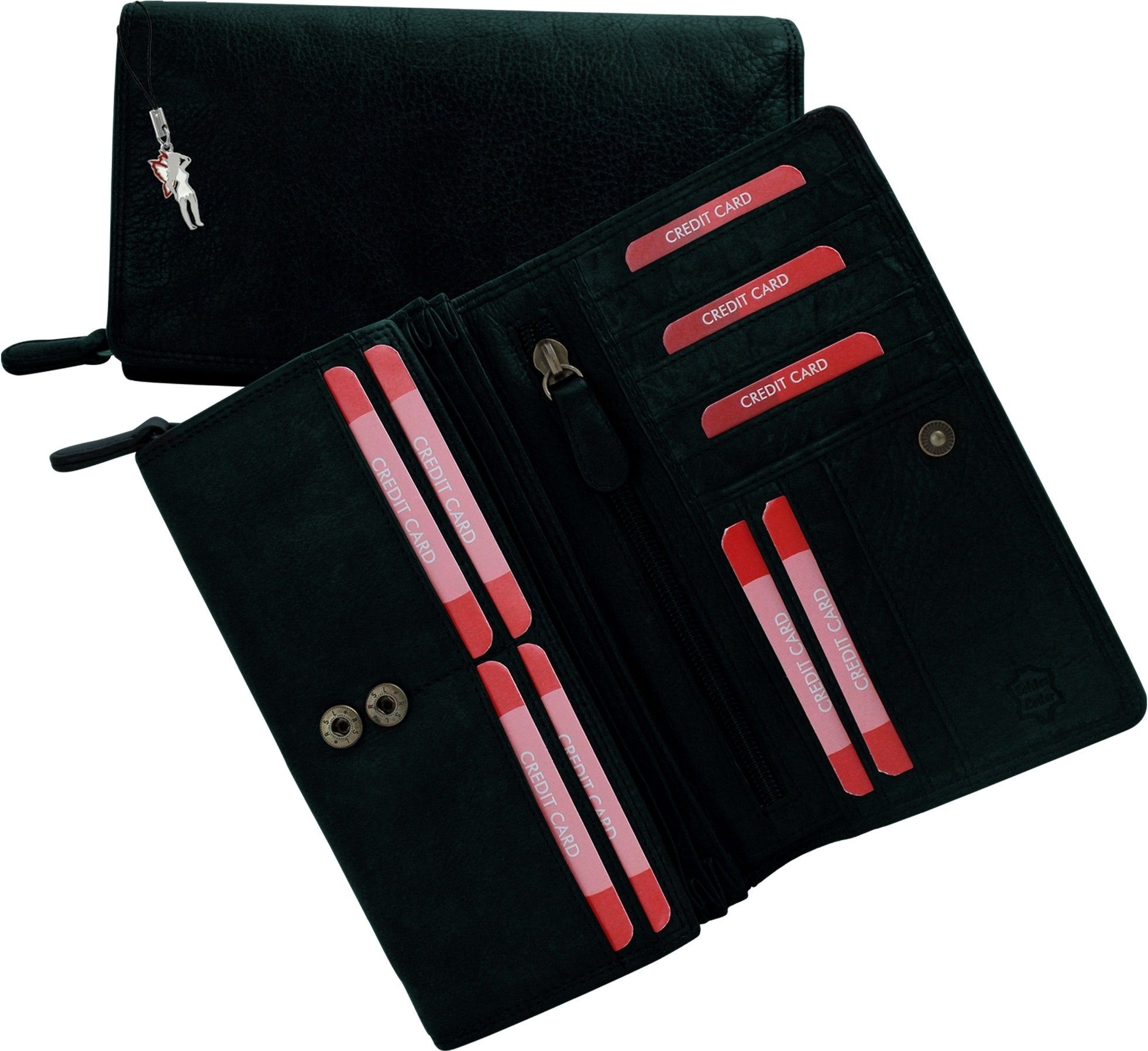 Besondere Merkmale | Damen, Jugend Echtleder Geldbörse Размер ca. 19cm, schwarz |