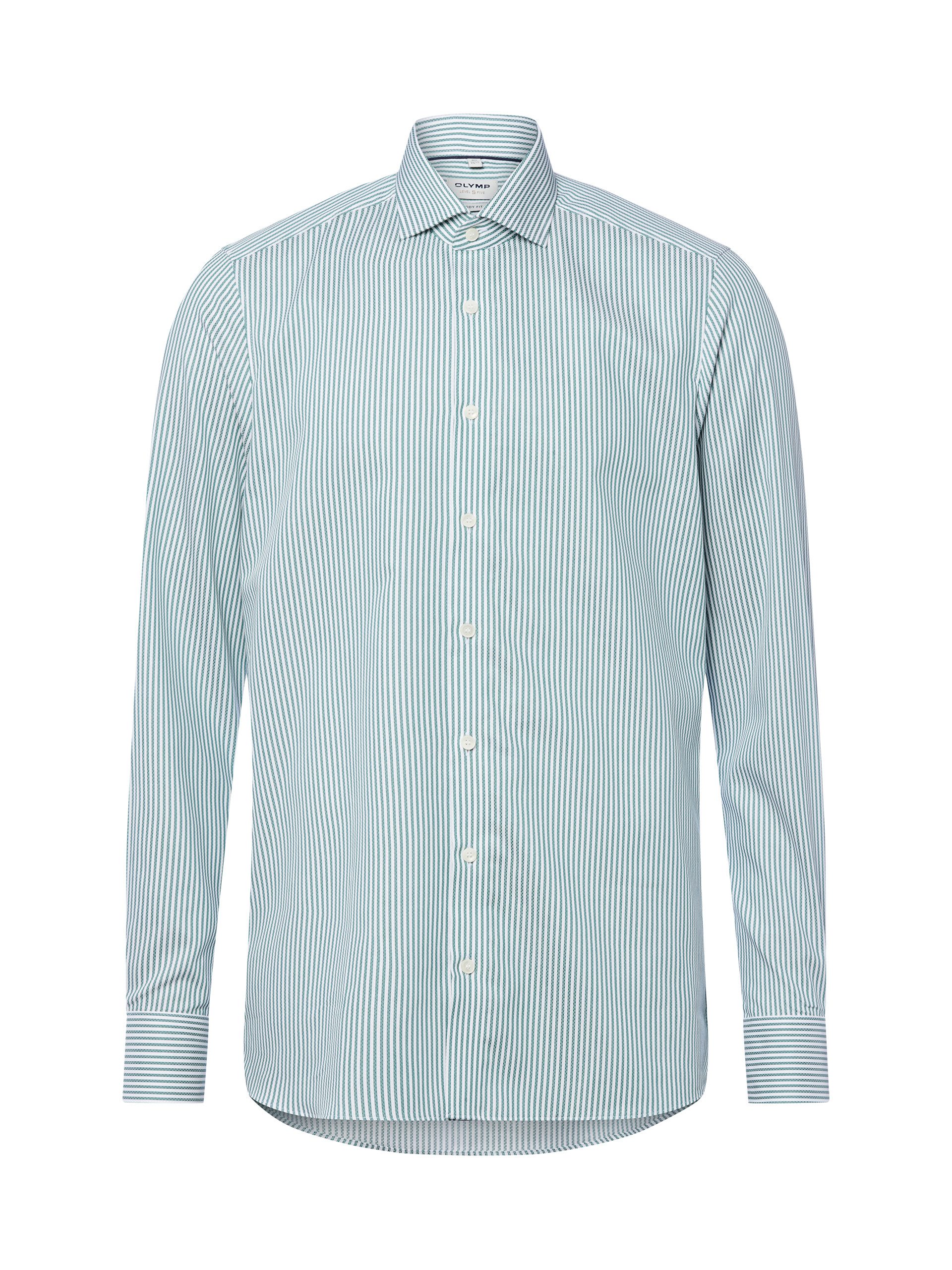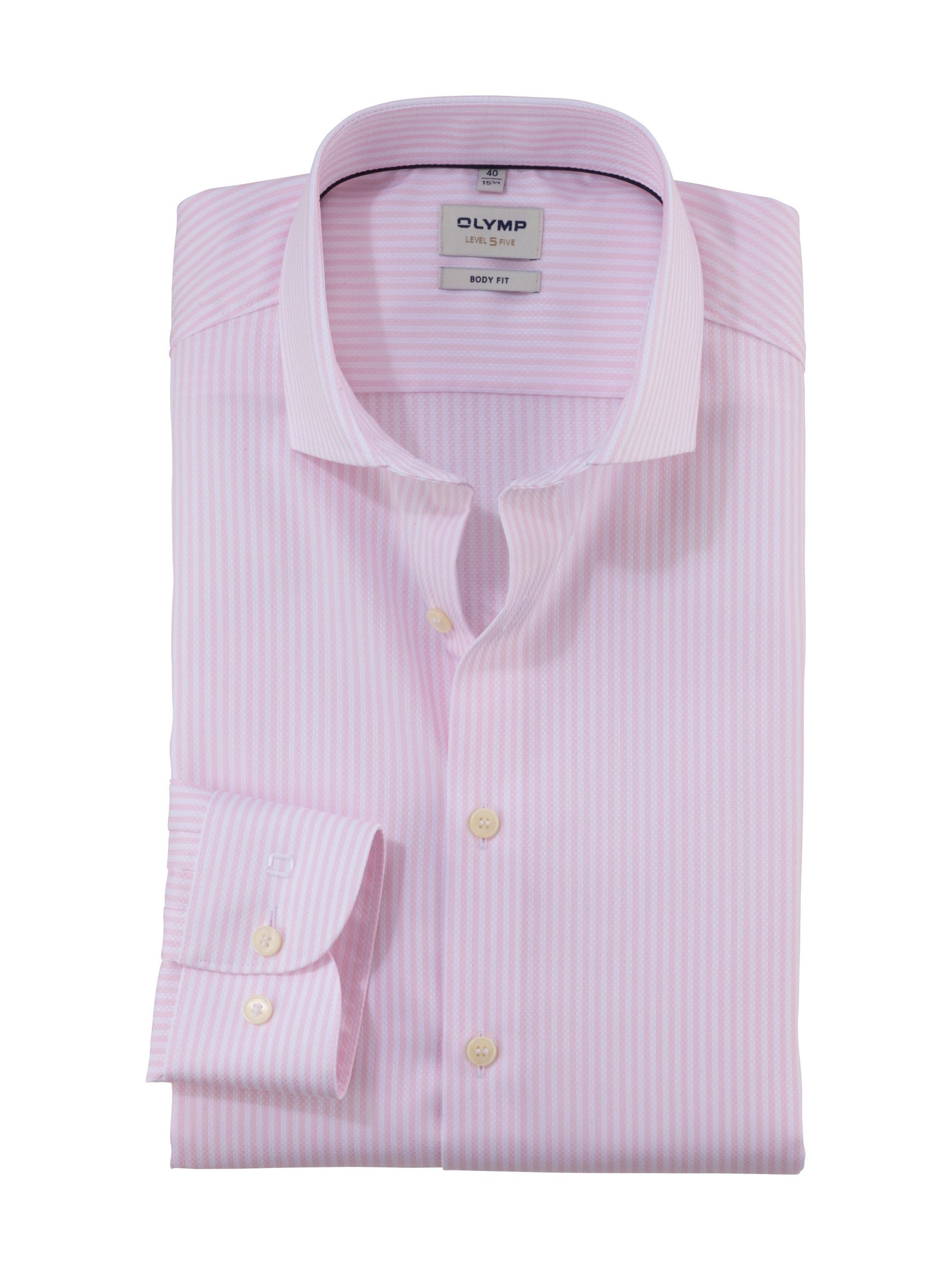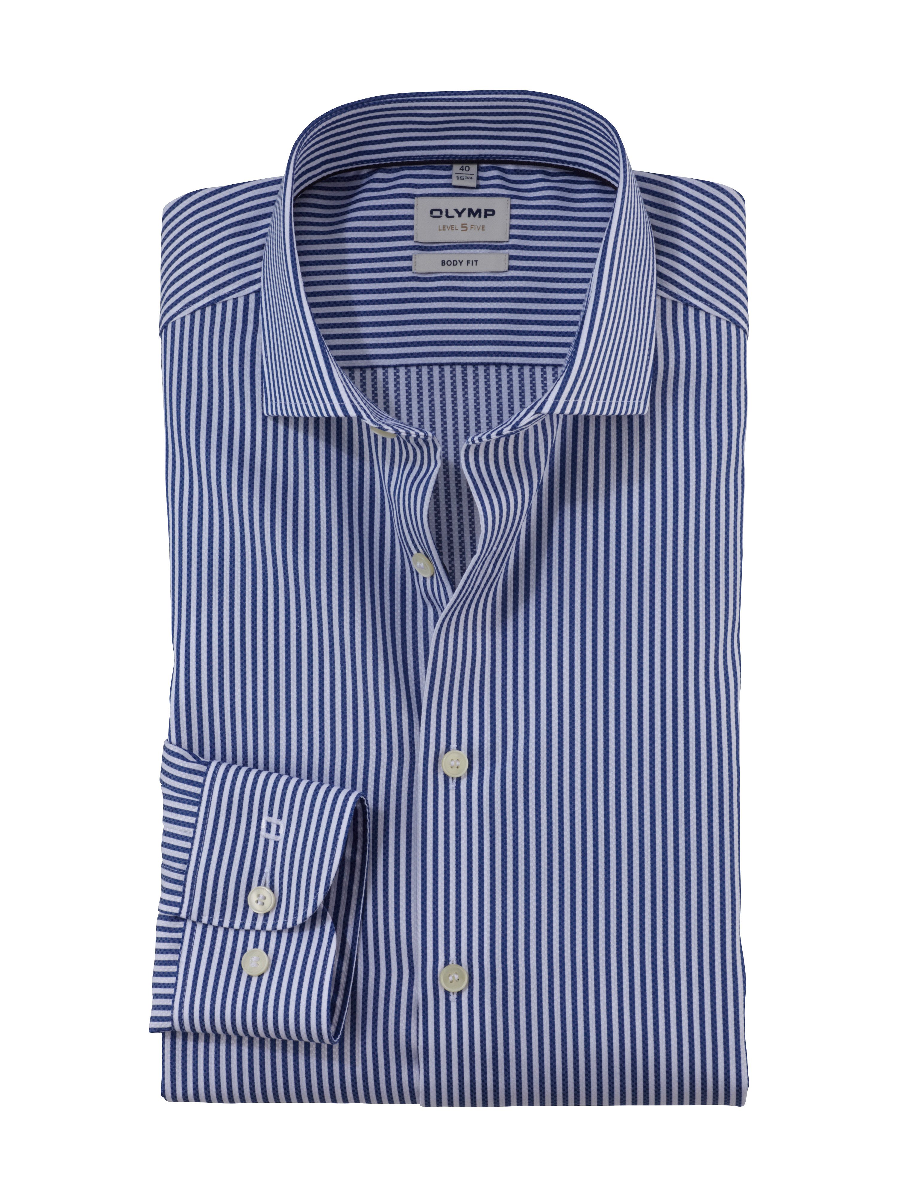 Fühl Dich Großartig in Deinem Neuen Streifenhemd!Stil trifft auf Komfort mit dem Body-Fit Hemd von OLYMP. Dieses Businesshemd ist nicht nur ein optischer Hingucker, sondern überzeugt auch durch seine hochwertige Verarbeitung. Gefertigt aus 100% Baumwolle, bietet es dir den ganzen Tag über ein angenehmes Tragegefühl, ohne dass du auf Eleganz verzichten musst.Perfekte Passform, die sich Deinem Stil anpasstDas OLYMP Level Five Hemd ist speziell für eine körpernahe Passform designt, die deine Figur optimal zur Geltung bringt. Der moderne Royal Kent-Kragen verleiht eine edle Note, während das zeitlose Streifenmuster dem Hemd eine dynamische Ausstrahlung verleiht. Egal ob für das Büro oder einen besonderen Anlass, dieses Hemd zieht die Blicke auf sich.Ein Hauch von Luxus für Deinen AlltagDie langen Ärmel und die glatte Textur der Baumwolle sorgen dafür, dass du dich den ganzen Tag wohl fühlst und gleichzeitig professionell aussiehst. Die Qualität und die sorgfältige Verarbeitung des Stoffes garantieren, dass du lange Freude an diesem Hemd haben wirst. Es ist nicht nur ein Kleidungsstück, sondern ein Statement, das Selbstbewusstsein und Stil ausstrahlt.Warum dieses Hemd ein Must-Have ist 100% hochwertige Baumwolle für maximalen Komfort Body-Fit Schnitt, der deine Figur betont Elegantes Streifenmuster und stilvoller Kent-Kragen Ideal für Business und besondere Anlässe Langlebig und pflegeleichtVerleihe deinem Kleiderschrank ein Upgrade mit dem Body-Fit Hemd von OLYMP. Fühle dich den ganzen Tag über frisch und selbstbewusst. Dieses Hemd ist nicht nur ein Kleidungsstück, es ist eine Investition in deinen Stil.