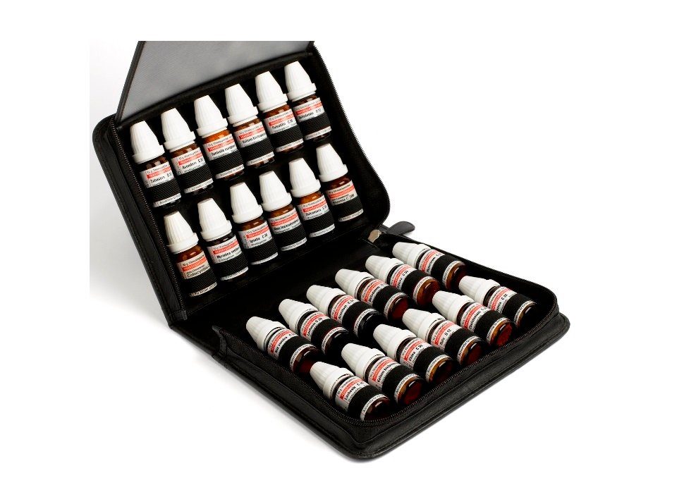 Das weiche Velours Innenfutter gibt den Flaschen eine weiche Polsterung. Diese Taschenapotheke für DHU Flaschen oder Öle ist sehr praktisch auf Reisen oder unterwegs oder auch als homöopahthische Hausapotheke sehr nützlich.