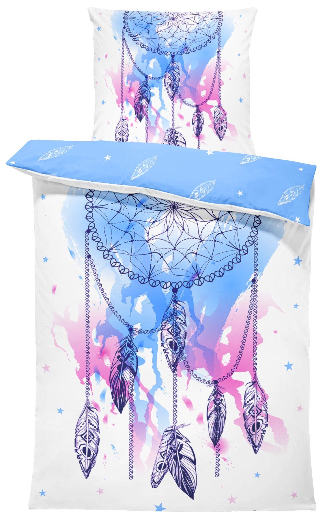 Wendebettwäsche mit großem Traumfänger, Federn und Sternen