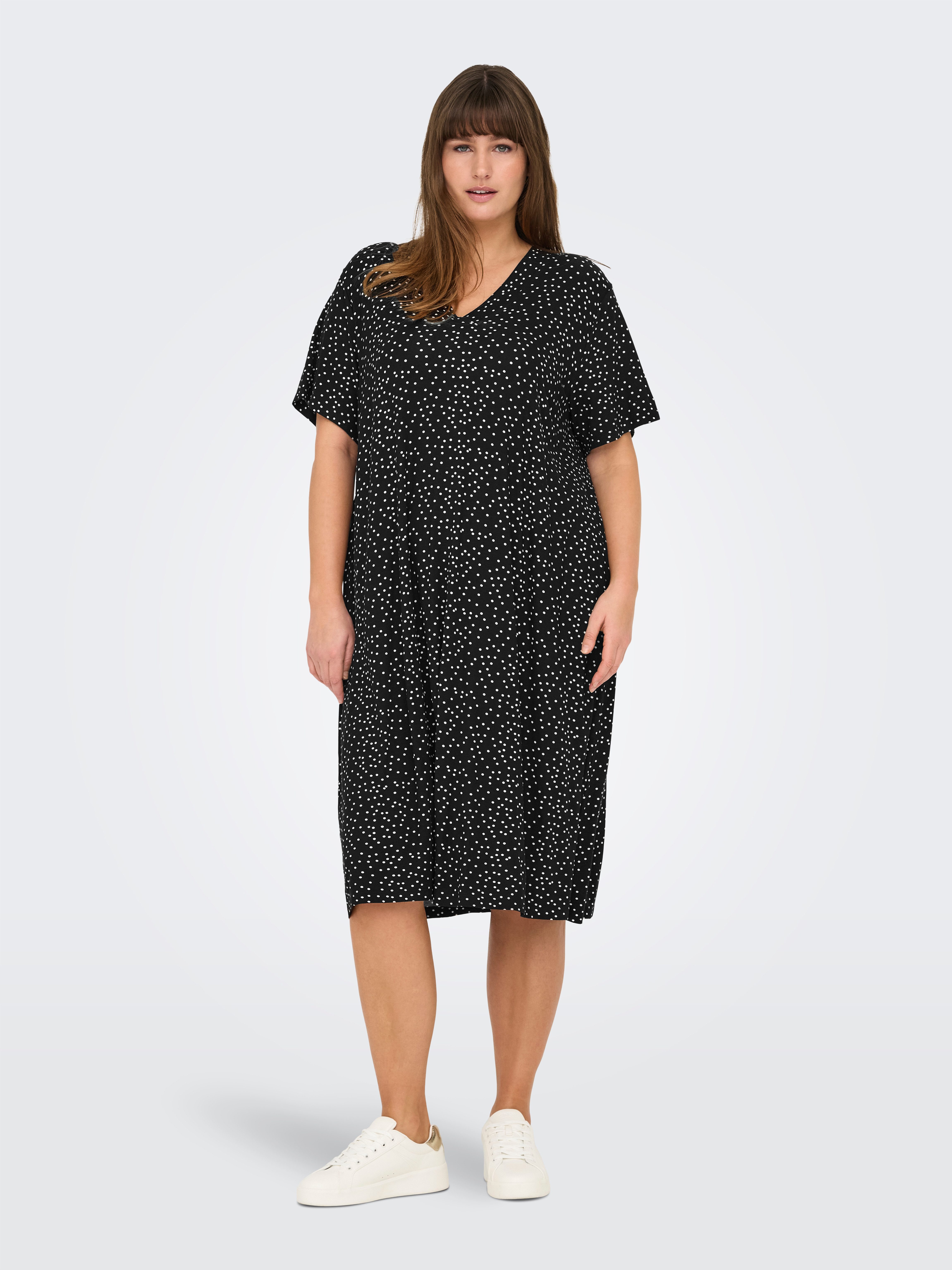 Mit dem Shirtkleid »CARFYRLA LIFE S/S V-NCK BLK AOP DRE NOOS« von ONLY CARMAKOMA bist du leger unterwegs. Der lockere Schnitt umspielt deine Figur.