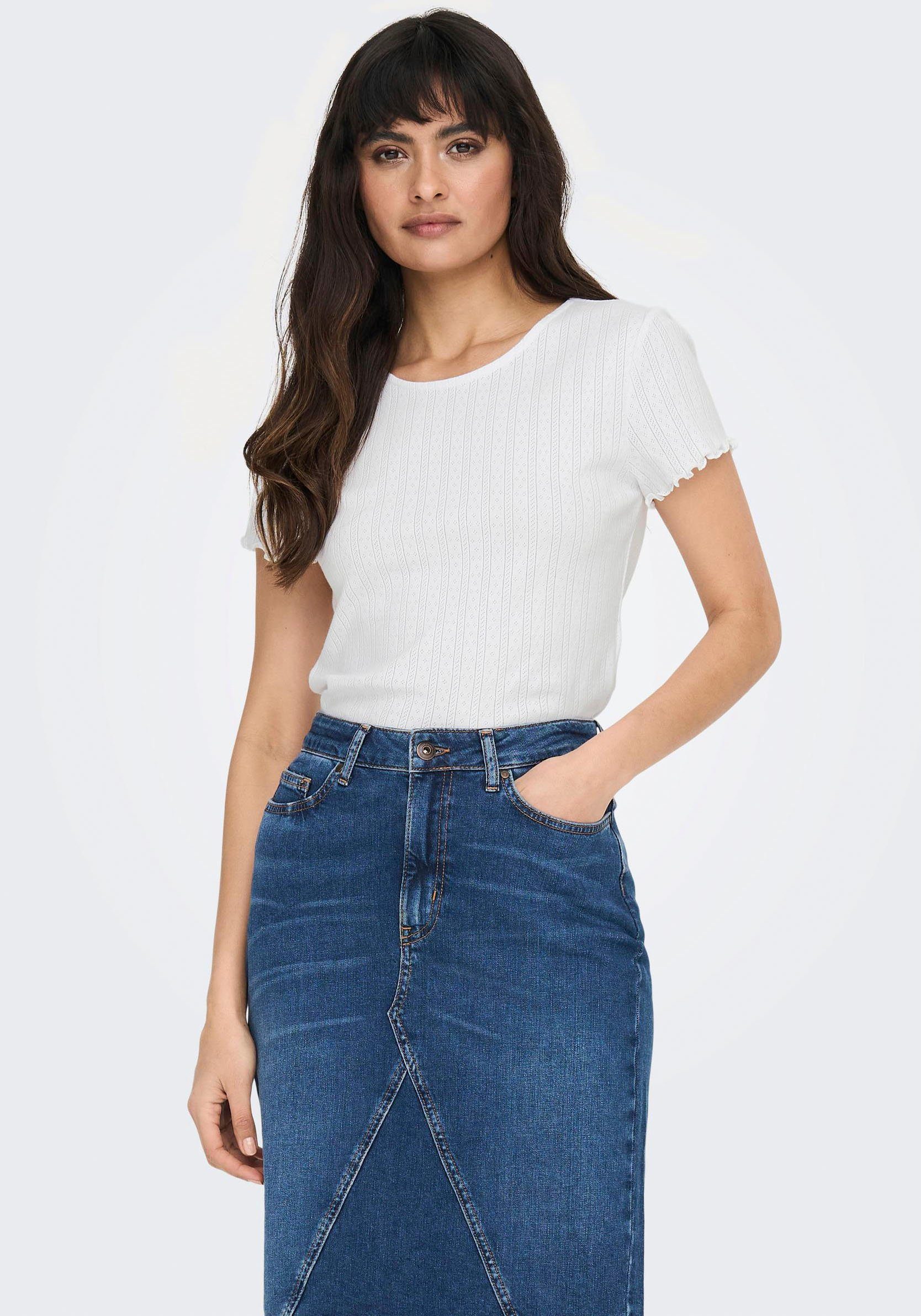 Mit dem Kurzarmshirt von ONLY stellst du im Handumdrehen ein neues Outfit zusammen. Die kurzen Ärmel enden in einem gewellten Abschluss. Dieses Shirt hat einen Rundhalsausschnitt und ist normal.