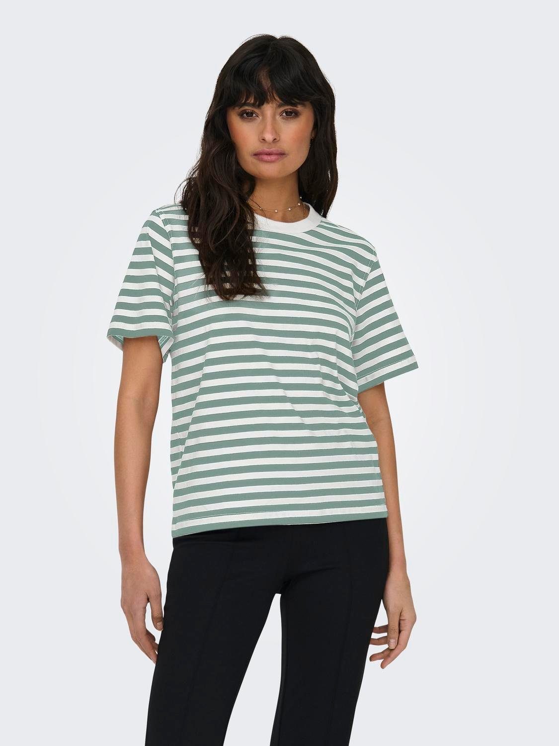 Das Kurzarmshirt von ONLY bildet die Grundlage für jedes stilsichere Outfit. Dieses Shirt hat einen Rundhalsausschnitt und ist normal sowie basic geschnitten und umspielt deinen Oberkörper locker.