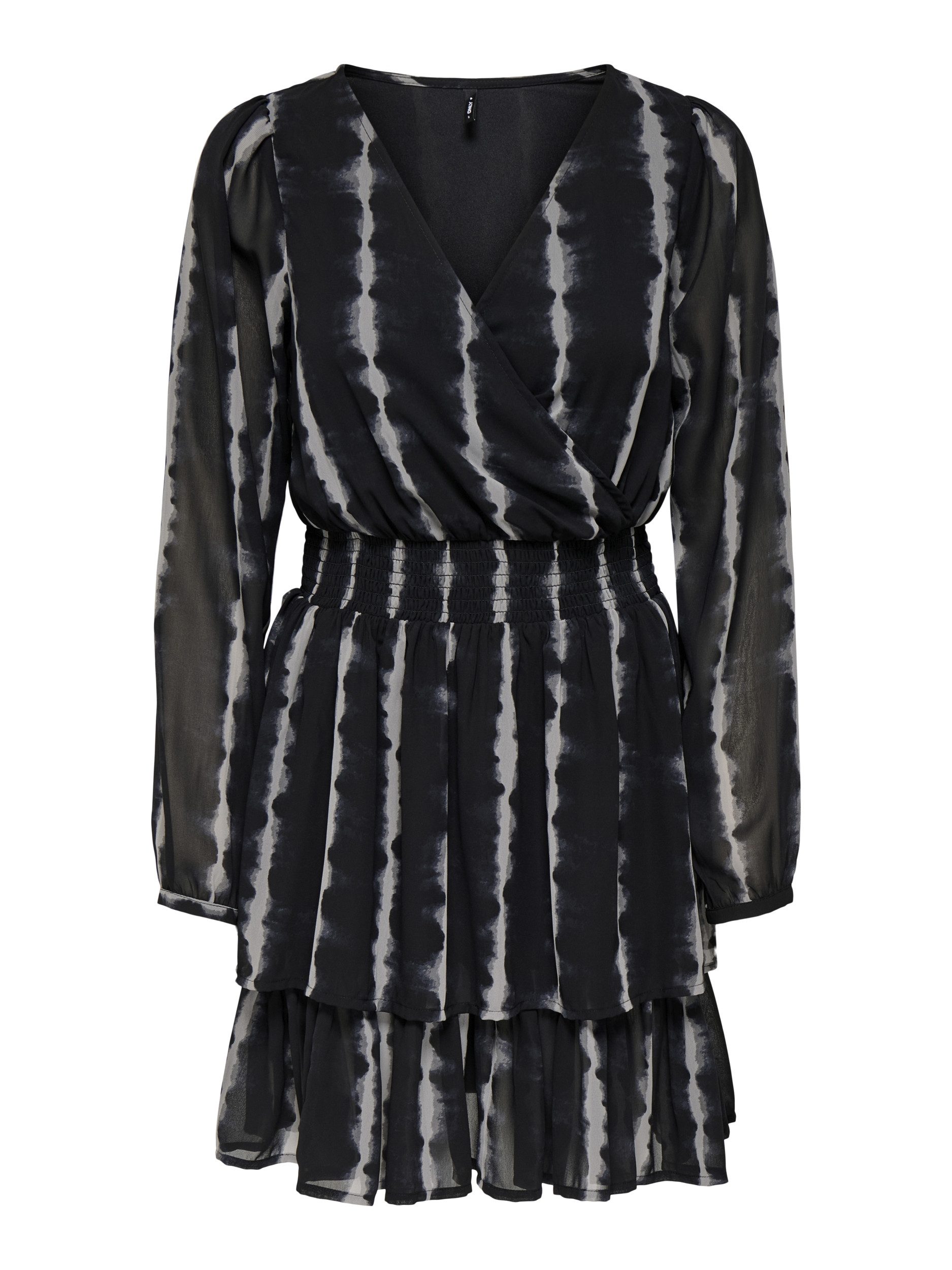 Das Kleid besticht durch sein mehrlagiges Design, das sowohl stilvoll als auch komfortabel ist. Mit einem V-Ausschnitt setzt es ein modisches Statement, das Deine Weiblichkeit unterstreicht. Die langen Ärmel enden in eleganten Ärmelbündchen mit Knöpfen, die für einen raffinierten Look sorgen. Dieses Kleid eignet sich hervorragend für jeden Casual-Anlass, sei es eine Gartenparty oder ein Dinner im Restaurant. Der gestreifte Look verleiht dem Kleid eine dynamische Note, die Deinem Outfit einen besonderen Touch verleiht.Die Mini-Длина des Kleides sorgt für eine jugendliche und frische Ausstrahlung, ideal für die warmen Monate oder für einen besonderen Abend. Dank der elastischen Taille kannst Du es bequem tragen, während es Deine Figur sanft betont. Die Rüschen-Details fügen dem Kleid eine verspielte Eleganz hinzu, die es einzigartig macht. Wenn Du ein Kleid suchst, das sowohl Komfort als auch Stil bietet, ist dieses Design genau das Richtige für Dich.Gefertigt aus 100% Polyester, bietet das Kleid nicht nur eine hervorragende Passform, sondern auch eine Langlebigkeit, die es zu einem wertvollen Bestandteil Deiner Garderobe macht. Das Material sorgt für ein angenehmes Tragegefühl und ist pflegeleicht, sodass Du es problemlos in Deinen Alltag integrieren kannst. Ob für ein spontanes Treffen mit Freunden oder eine geplante Veranstaltung, das Kleid passt sich Deinen Bedürfnissen perfekt an.Die mittlere Taille sorgt für einen klassischen Schnitt, der universell schmeichelhaft ist und zu unterschiedlichen Körpertypen passt. Kombiniere das Kleid mit Deinen Lieblingsaccessoires, um Deinen individuellen Stil zu unterstreichen. Egal ob Du es mit flachen Schuhen für einen entspannten Look oder mit hohen Absätzen für einen eleganteren Auftritt kombinierst, das Kleid bietet vielfältige Styling-Möglichkeiten. Mit seinem zeitlosen Design wird es schnell zu einem Deiner Favoriten im Kleiderschrank. Mehrlagiges Design mit V-Ausschnitt Elastische Taille mit Rüschen für Komfort und Stil 100% Polyester für Langlebigkeit und Pflegeleichtigkeit Mini-Длина und gestreiftes Muster für einen frischen Look Vielseitig kombinierbar für verschiedene Anlässe