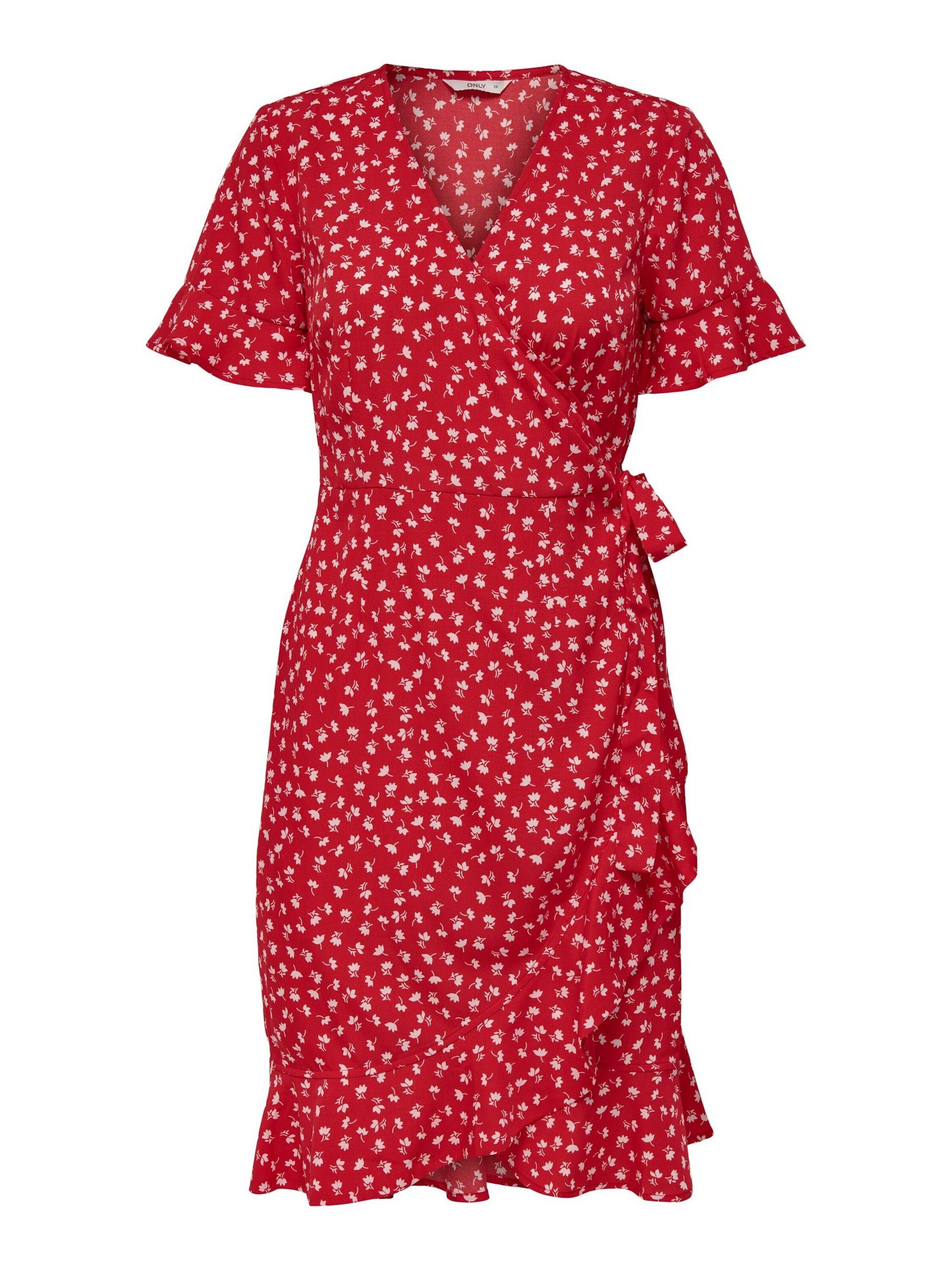 Dieses knielange Wickelkleid von ONLY ist eine ideale Basic Erweiterung für Deine Sunny Looks!