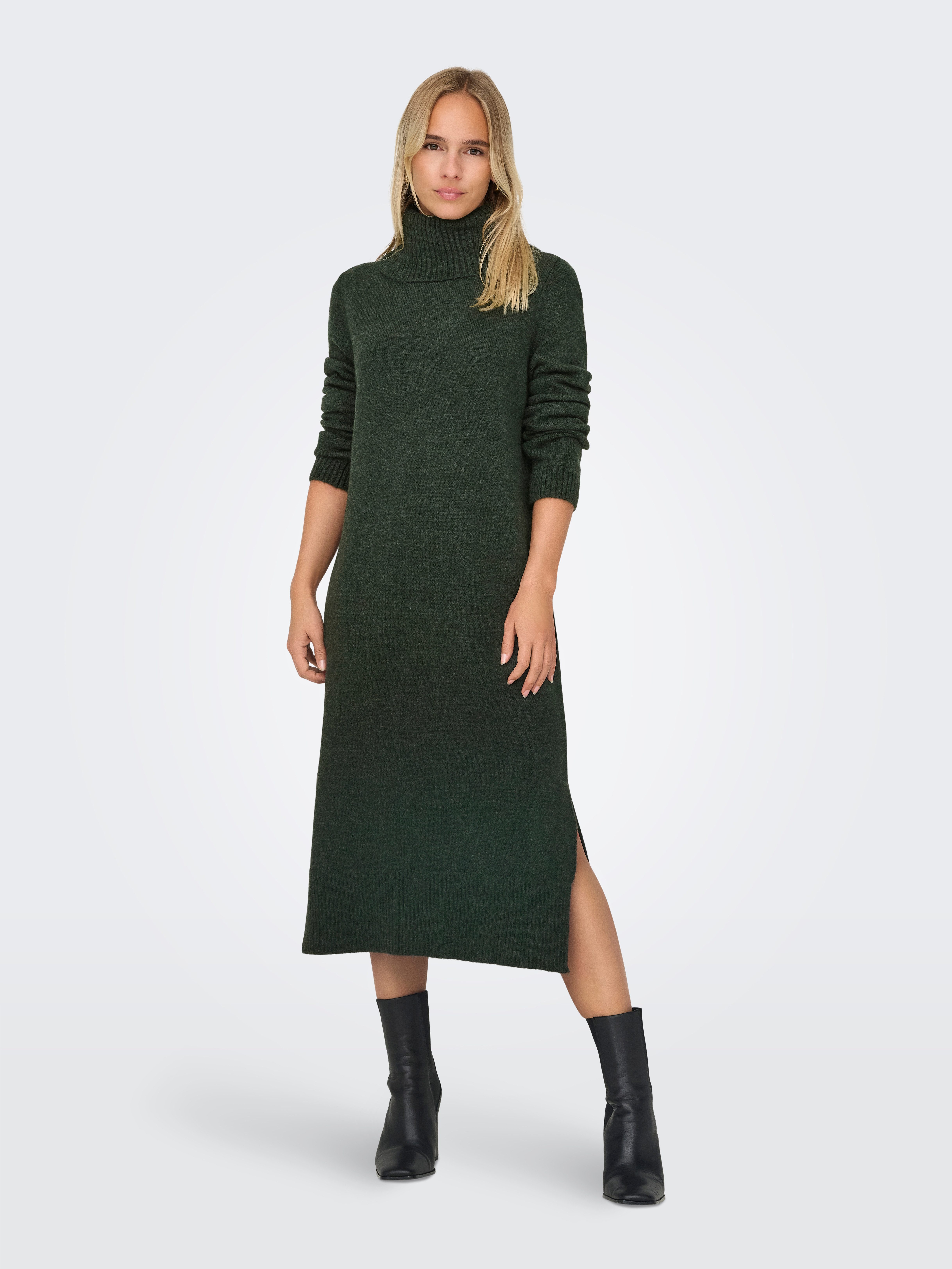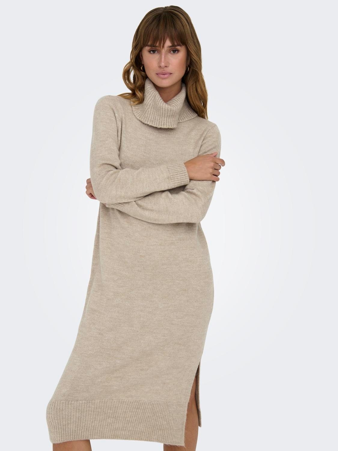 Das wadenlange Strickkleid von ONLY wird mit den Seitenschlitzen zum Hingucker. Der weite Schnitt umspielt deine Figur. Der Rollkragen umrahmt dein Gesicht und wärmt gleichzeitig deinen Hals.