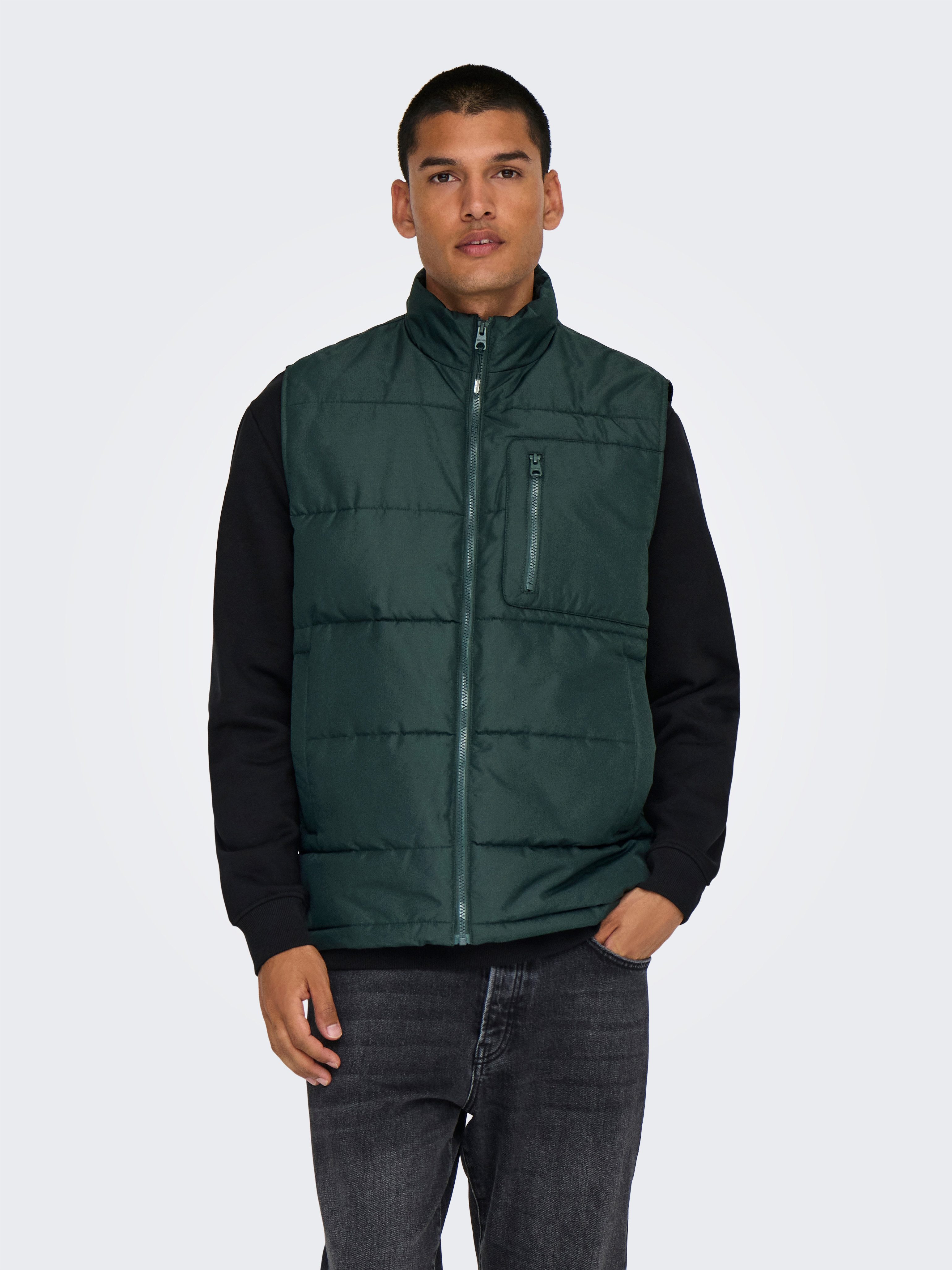 Zum Warmhalten über deinem T-Shirt oder Pullover an kühlen Tagen — die Herren-Steppweste »ONSJAKE QUILTED VEST OTW« von ONLY & SONS ist eine gute Idee für deine Outfits!