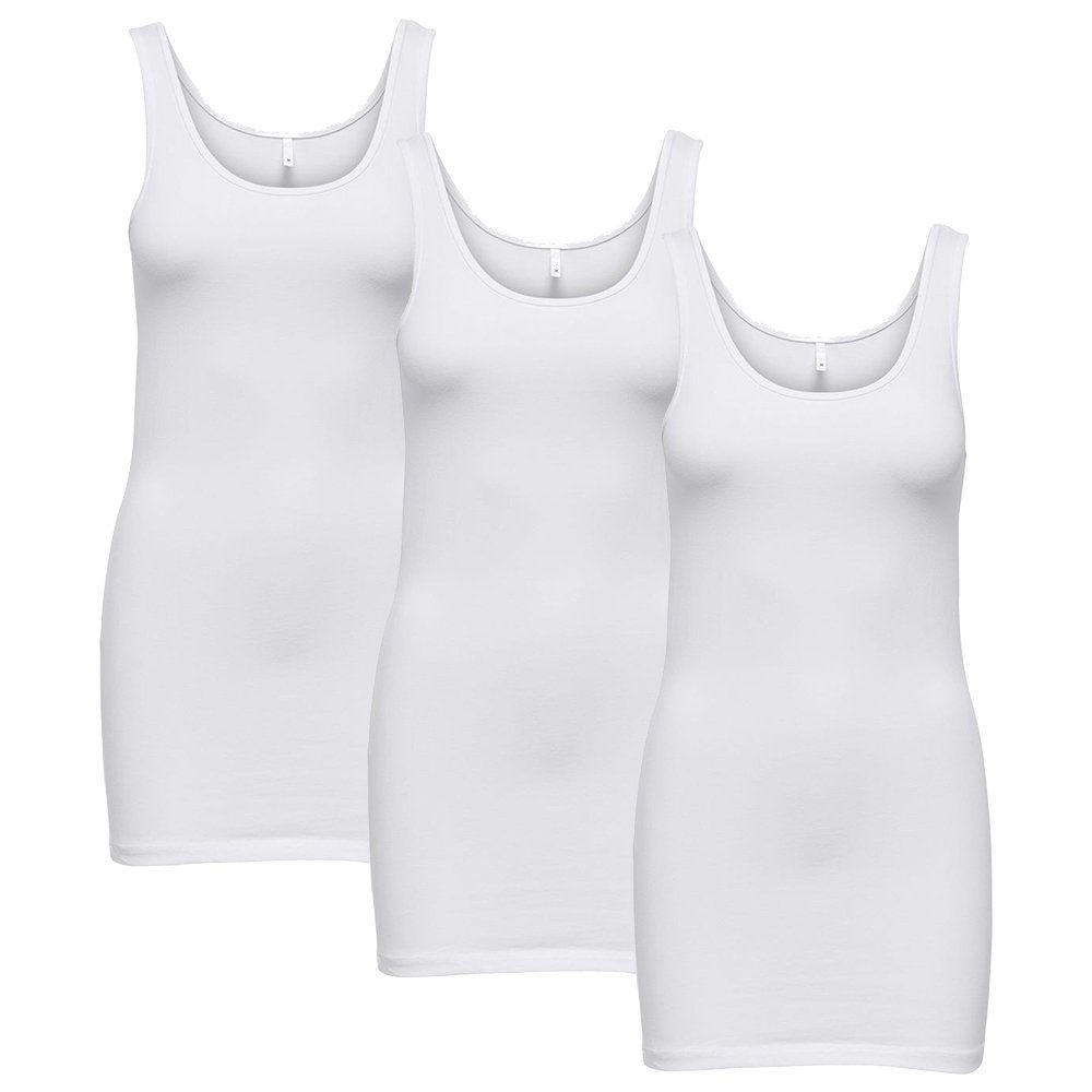 ONLY 3er Pack Damen LIVE LOVE LONG Oberteile Basic Tank Tops