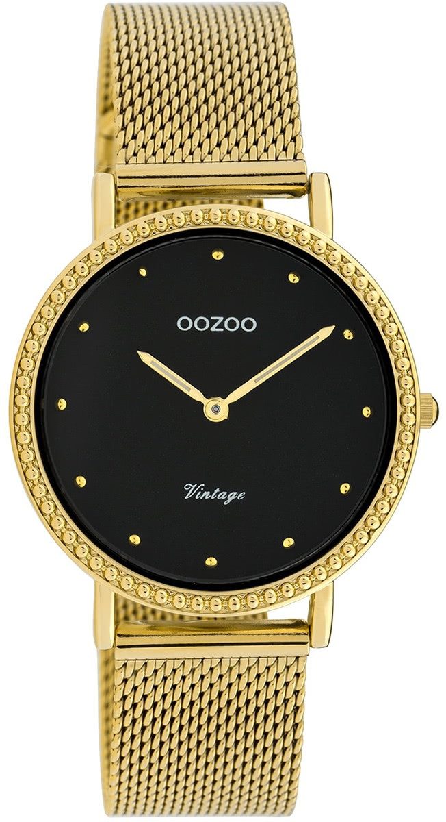 Die Fashion Uhr der Marke Oozoo hat ein schönes Armband aus Edelstahl in gold mit Klappverschluss. Eine Uhr aus der Oozoo Vintage Series Kollektion für Damen in der Gehäusefarbe gold mit Quarzwerk. Die Analoguhr mit Mineralglas hat ein Zifferblatt in der Farbe schwarz gold. Die Form der Uhr ist rund und das Gehäuse ist mittel ca. 33mm.