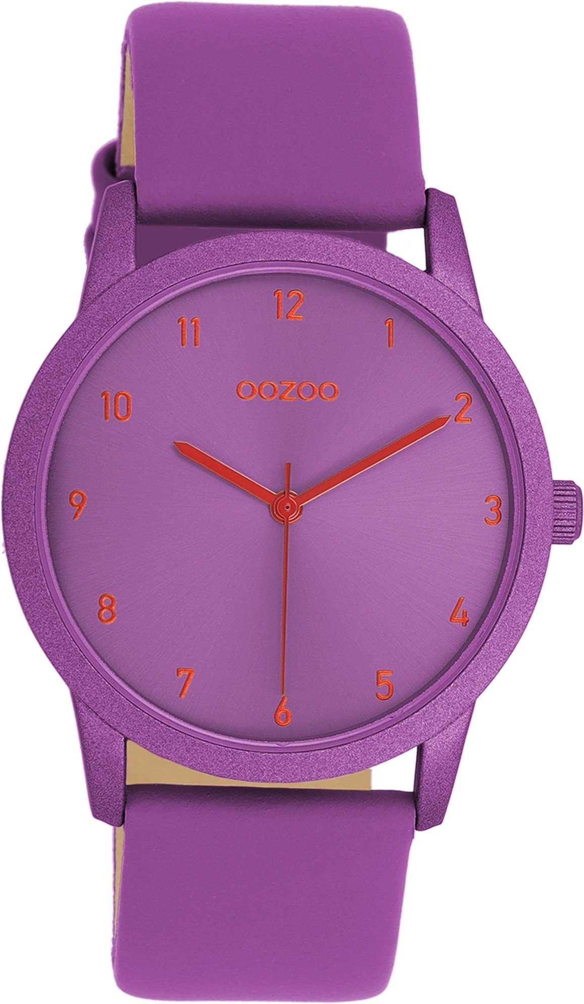 Die Fashion Uhr der Marke Oozoo hat ein schönes Armband aus Leder in lila mit Dornschließe. Eine Uhr aus der Oozoo Timepieces Kollektion für Damen in der Gehäusefarbe lila mit Quarzwerk. Die Analoguhr mit Mineralglas hat ein Zifferblatt in der Farbe lila. Die Form der Uhr ist rund und das Gehäuse ist mittel ca. 38mm.