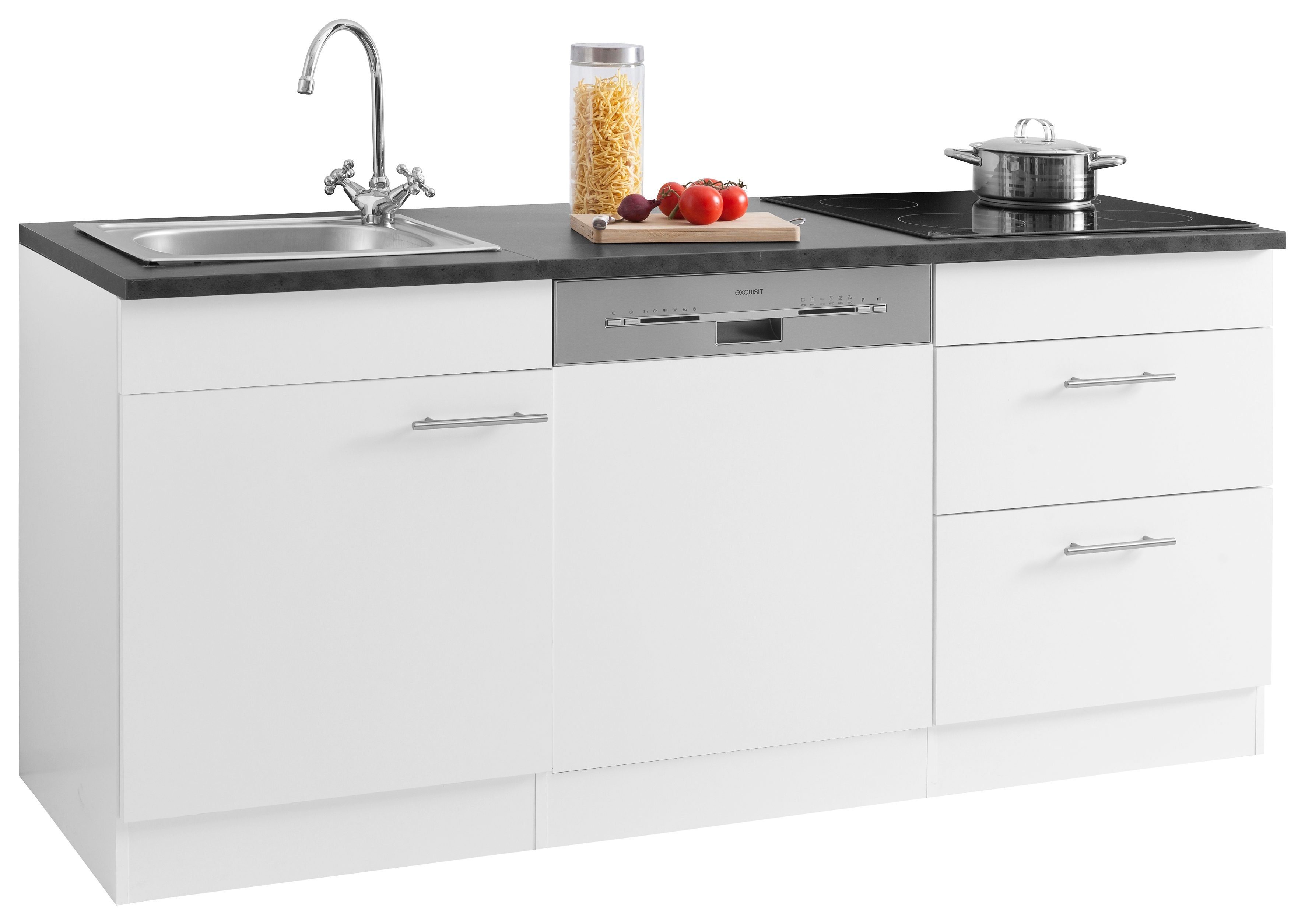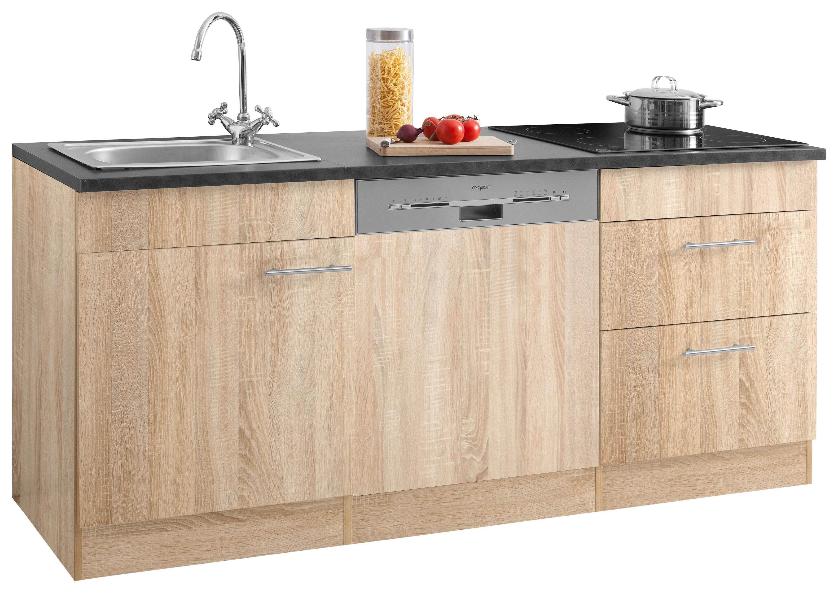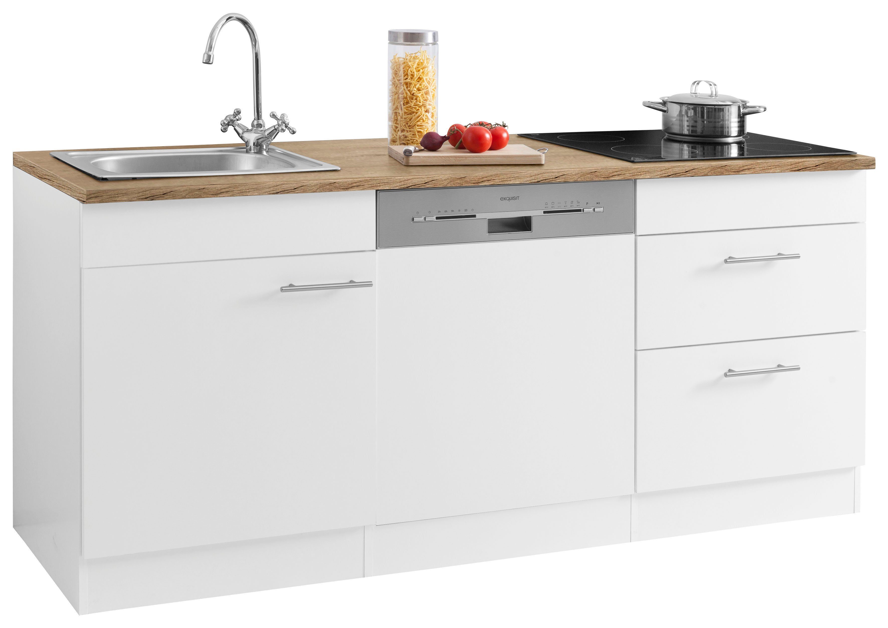 Ausstattung | Durchgehende Arbeitsplatte Laufleisten der Schubkästen aus Metall Seitenverkehrt stellbar Sockelhöhe nicht verstellbar inkl. Edelstahl-Einbauspüle, ohne Abtropffläche |