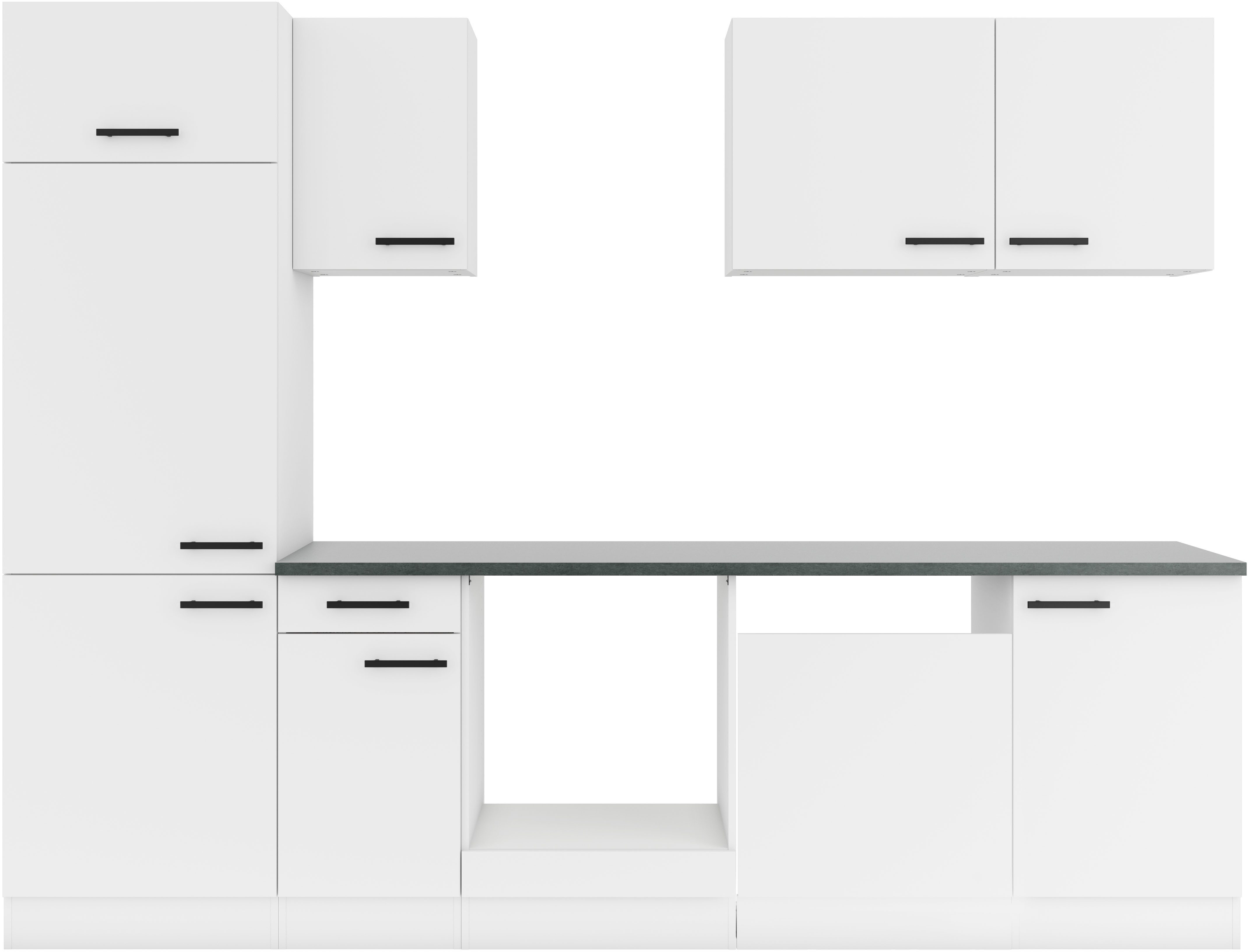 Informationen Arbeitsplatte | ohne Ausschnitte - dadurch sind die Schränke zum Teil variabel stellbar |