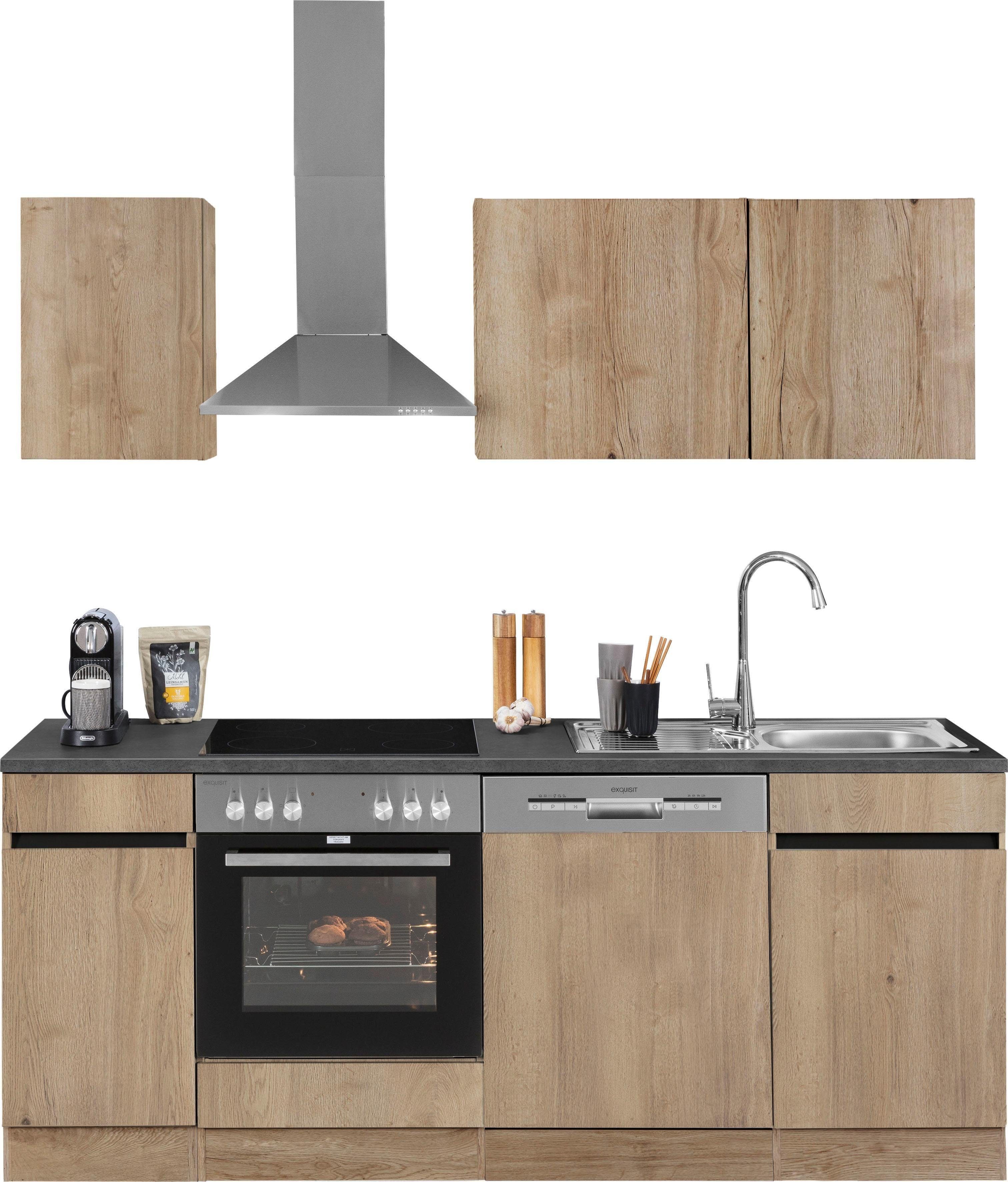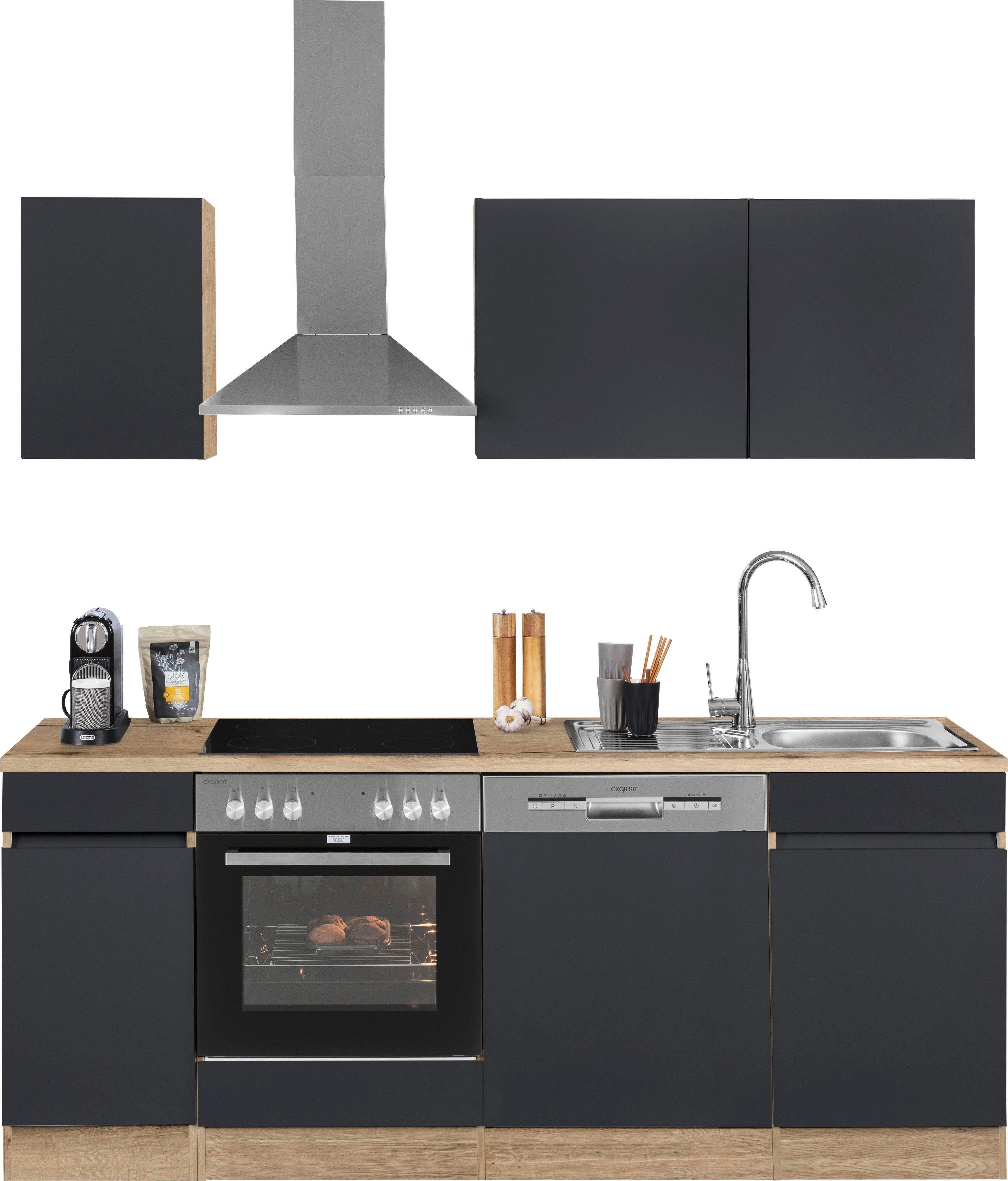 Ausstattung | Durchgehende Arbeitsplatte Einlegeböden höhenverstellbar Grifflose Optik Seitenverkehrt stellbar inkl. Edelstahl-Einbauspüle, mit Abtropffläche |