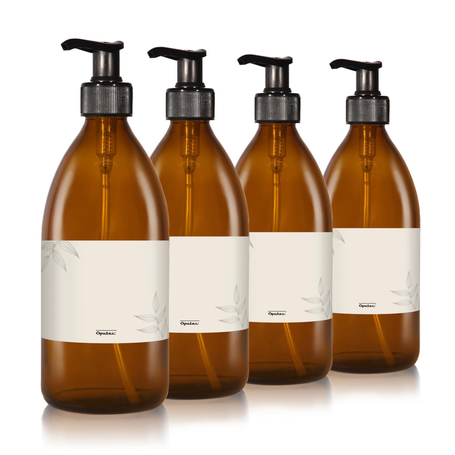 Oputec Seifenspender 4 x 500ml Seifenspender Pumpspender aus Glas zum Befüllen + Etiketten