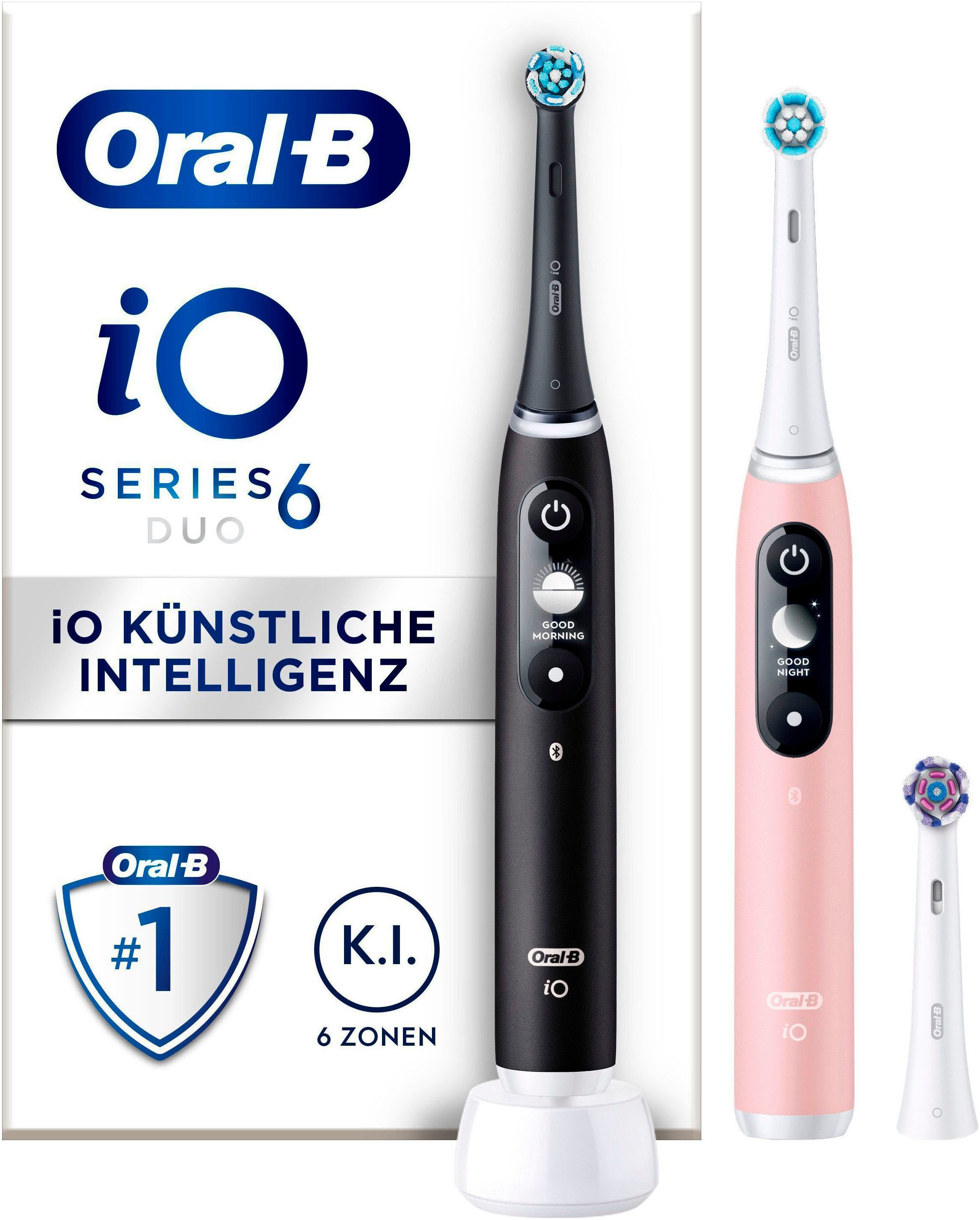 Lieferumfang | 2 iO 6 elektrische Zahnbürsten 3 Aufsteckbürsten Ladestation |