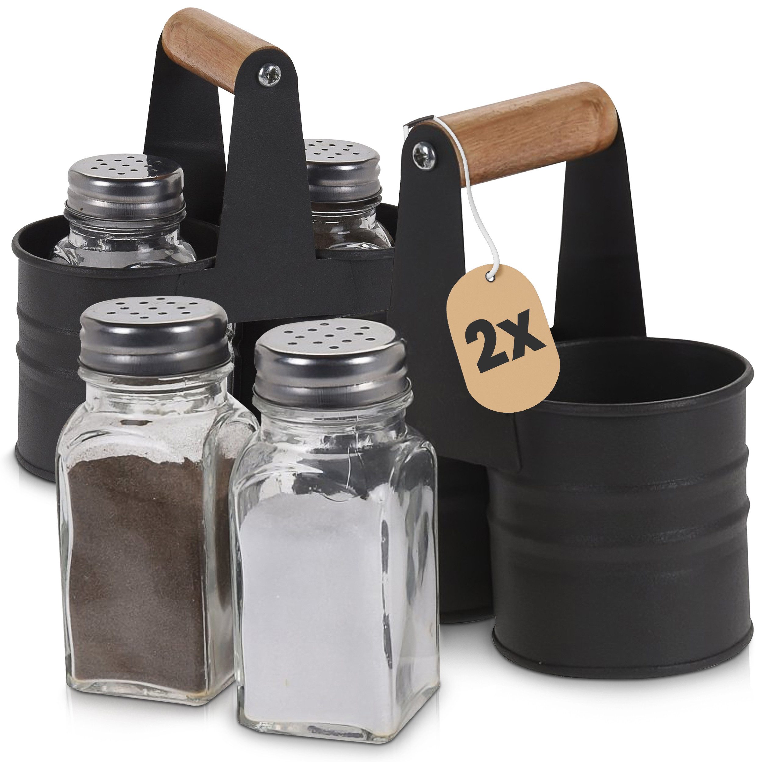 Pfeffer- und Salzstreuer Set - Ideal für Haushalt und Gastronomie - Set besteht aus Pfeffer-, Salzstreuer und Halterungen mit Griff