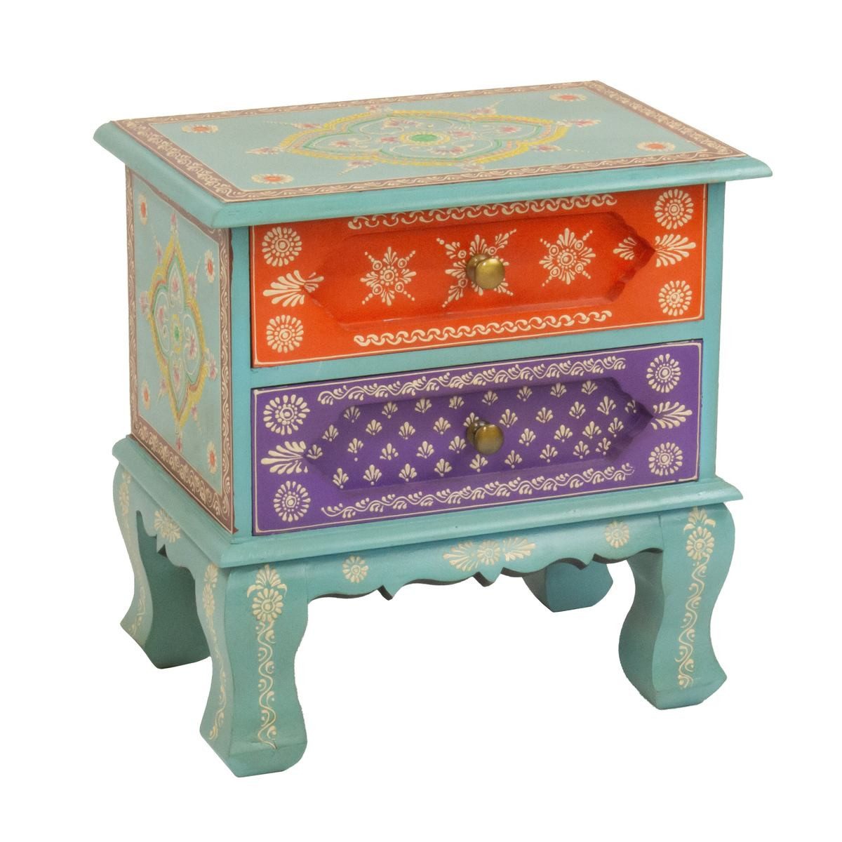 Die exklusiven Kommoden wurde in liebevoller Handarbeit in Indien aus Holz gefertigt. Zum besonderen Eyecatcher wird die kleine Kommode durch die aufwendigen Bemalungen auf den Schubladen und Seiten.