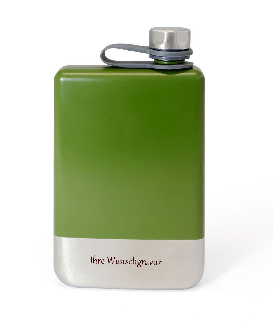 Dieser Flachmann besticht durch sein auffallendes Design. Hergestellt aus geruchs- und geschmacksneutralen sowie langlebigen und robusten Edelstahl. Der praktische Schraubverschluss ist mit einer Gelenksicherung ausgestattet und kann somit nicht verloren gehen.