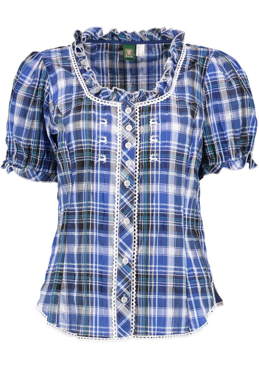Besondere Merkmale | Kurzarmbluse mit Rundhalsausschnitt mit weißer Litze |