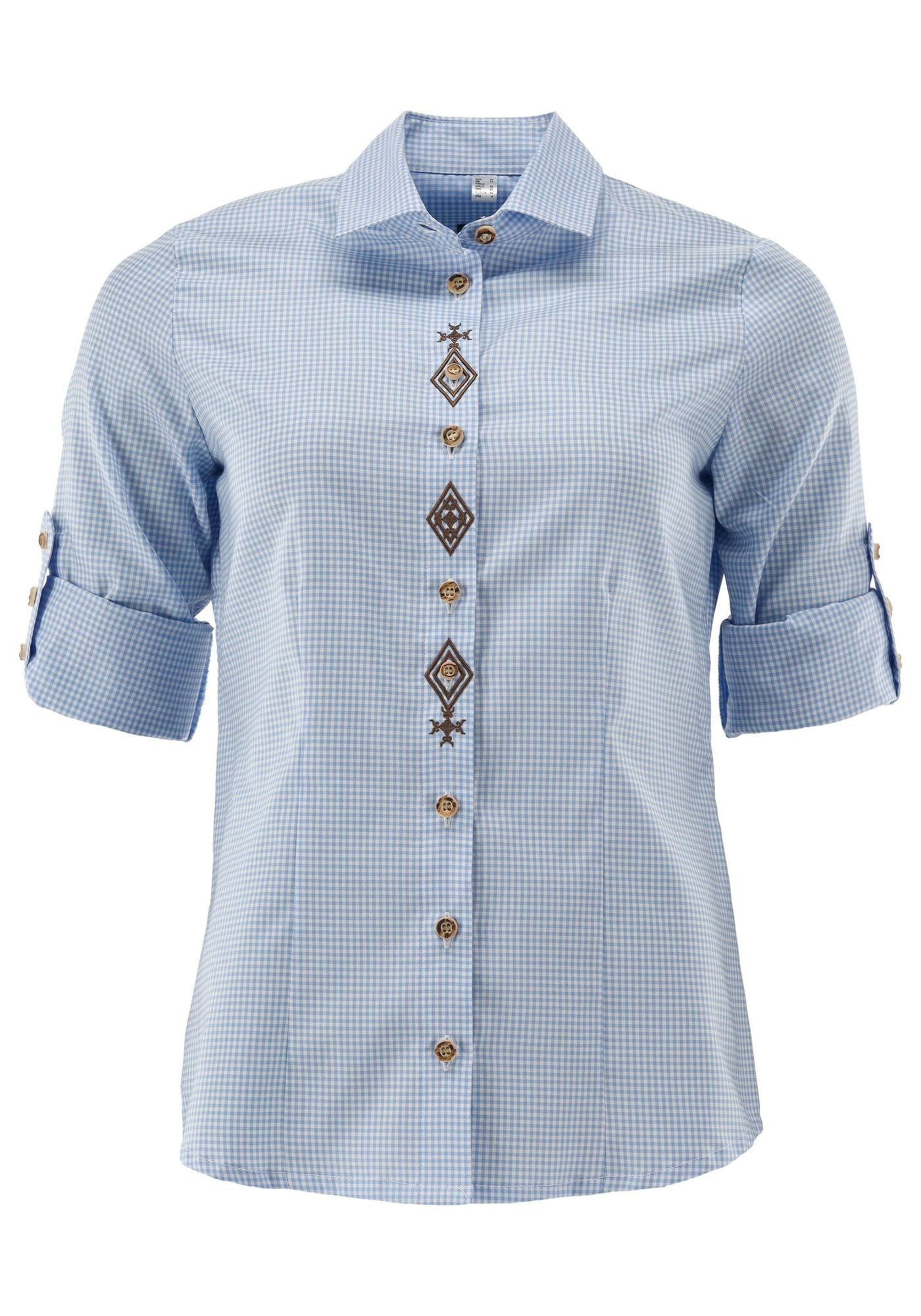 Besondere Merkmale | Tailliert, Haifischkragen, Stickerei auf Knopfleiste "3 Rauten" |