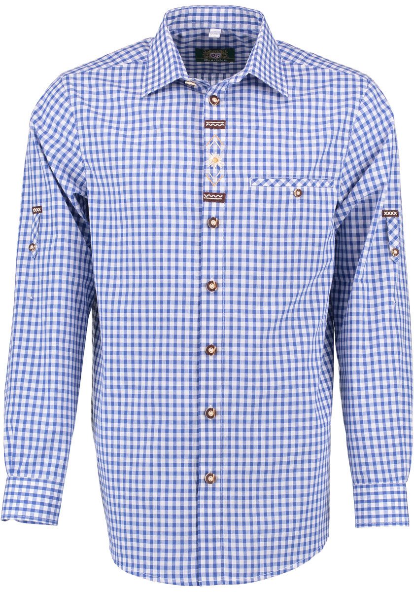 Besondere Merkmale | Langarmhemd mit Paspeltasche, Edelweiß-Stickerei auf der Knopfleiste |