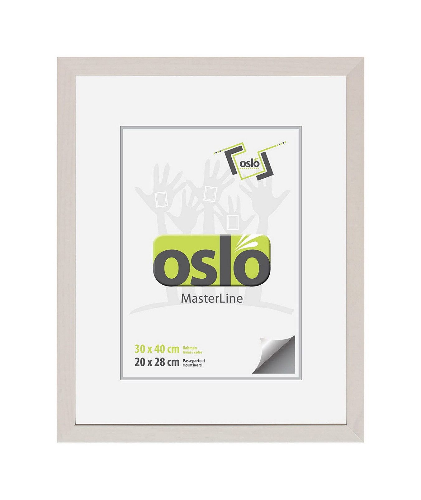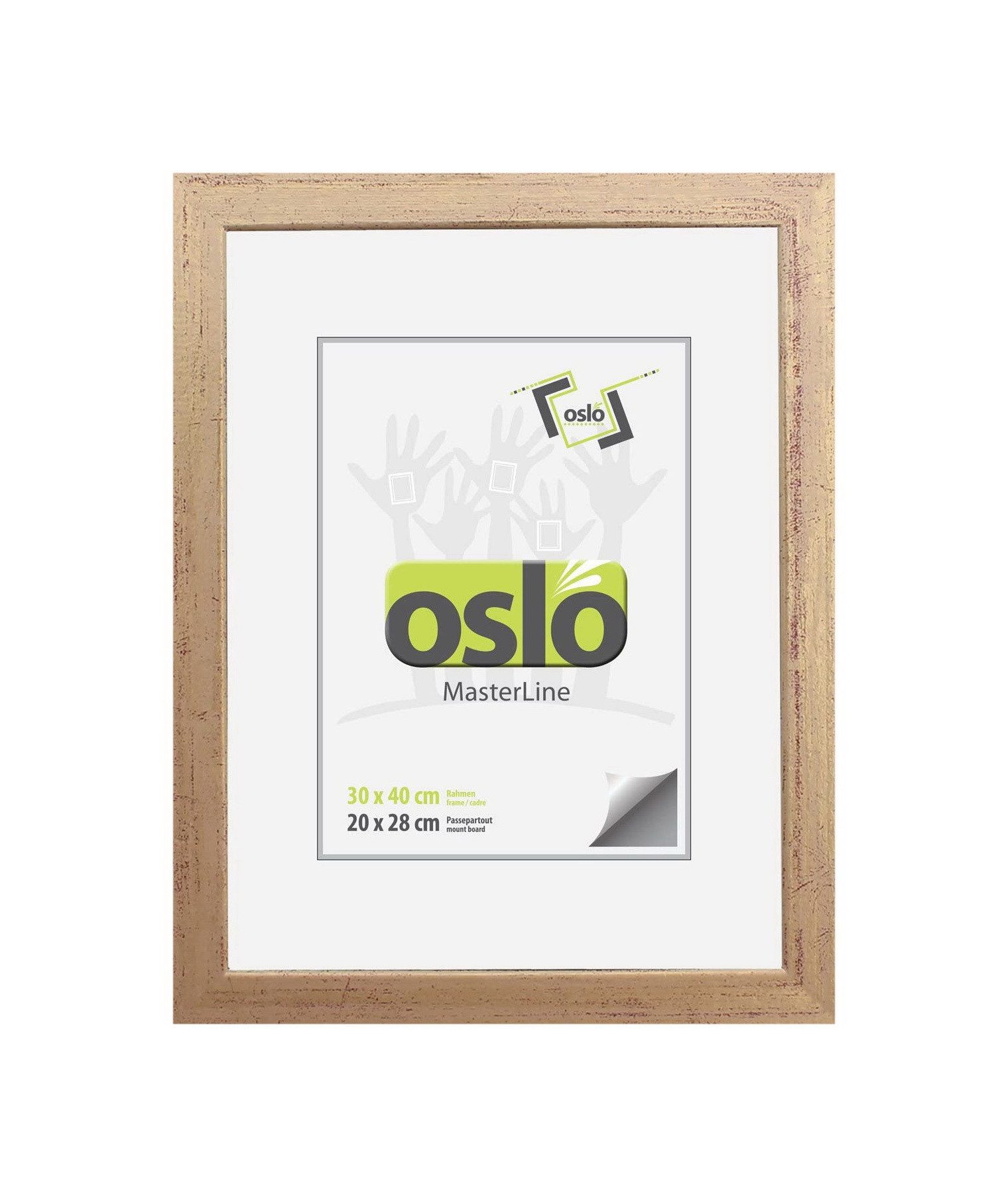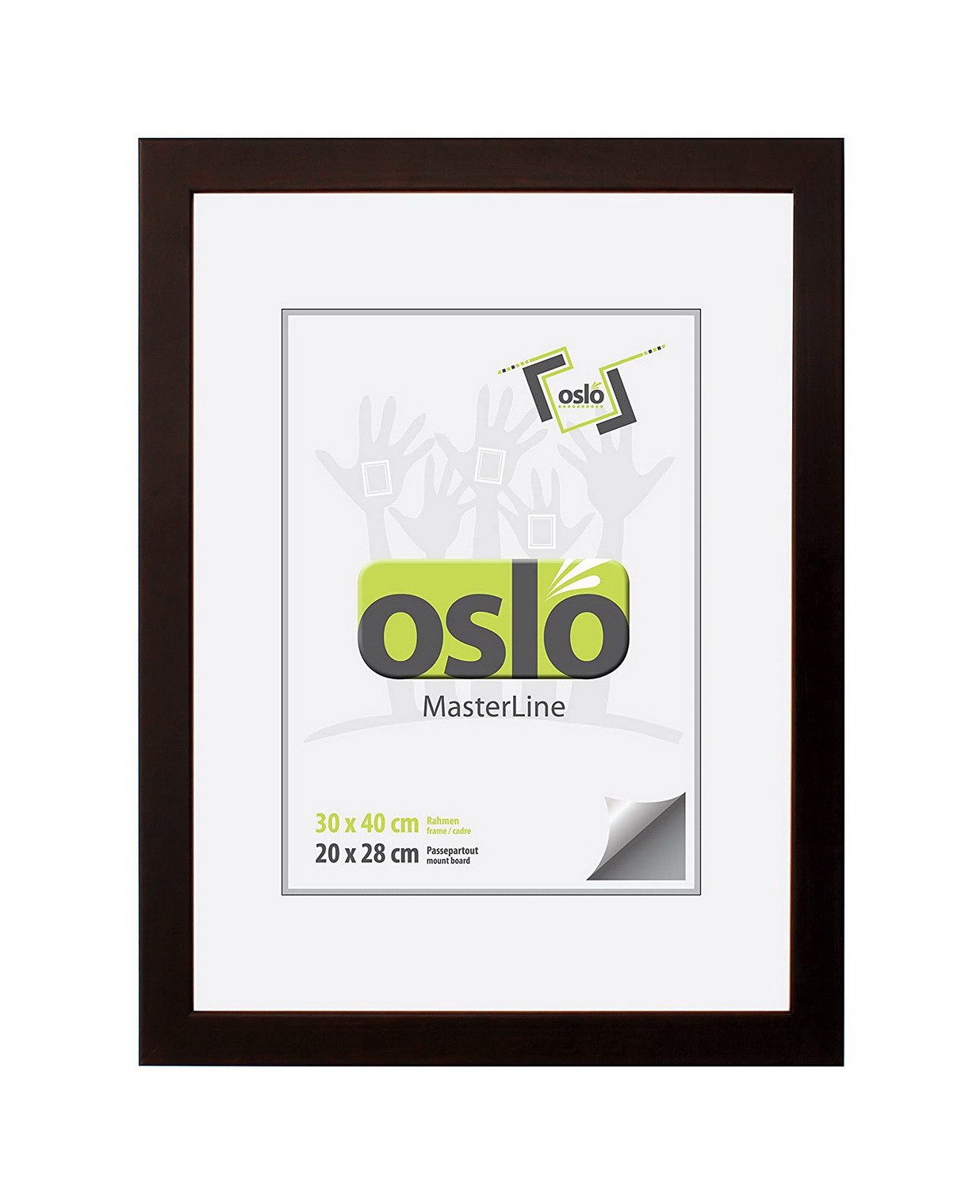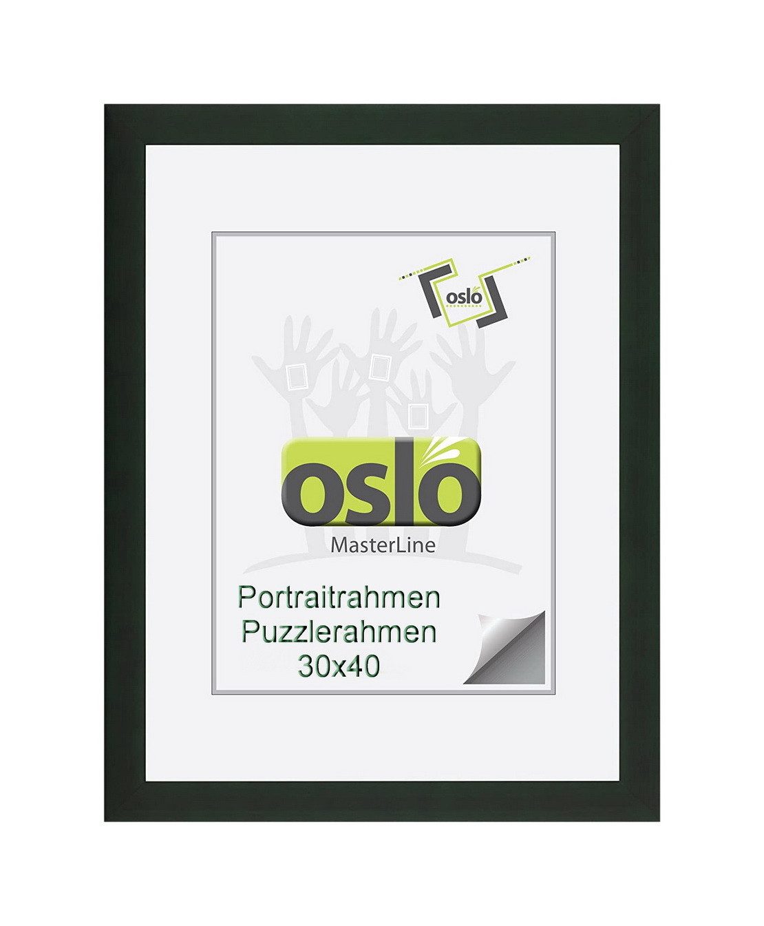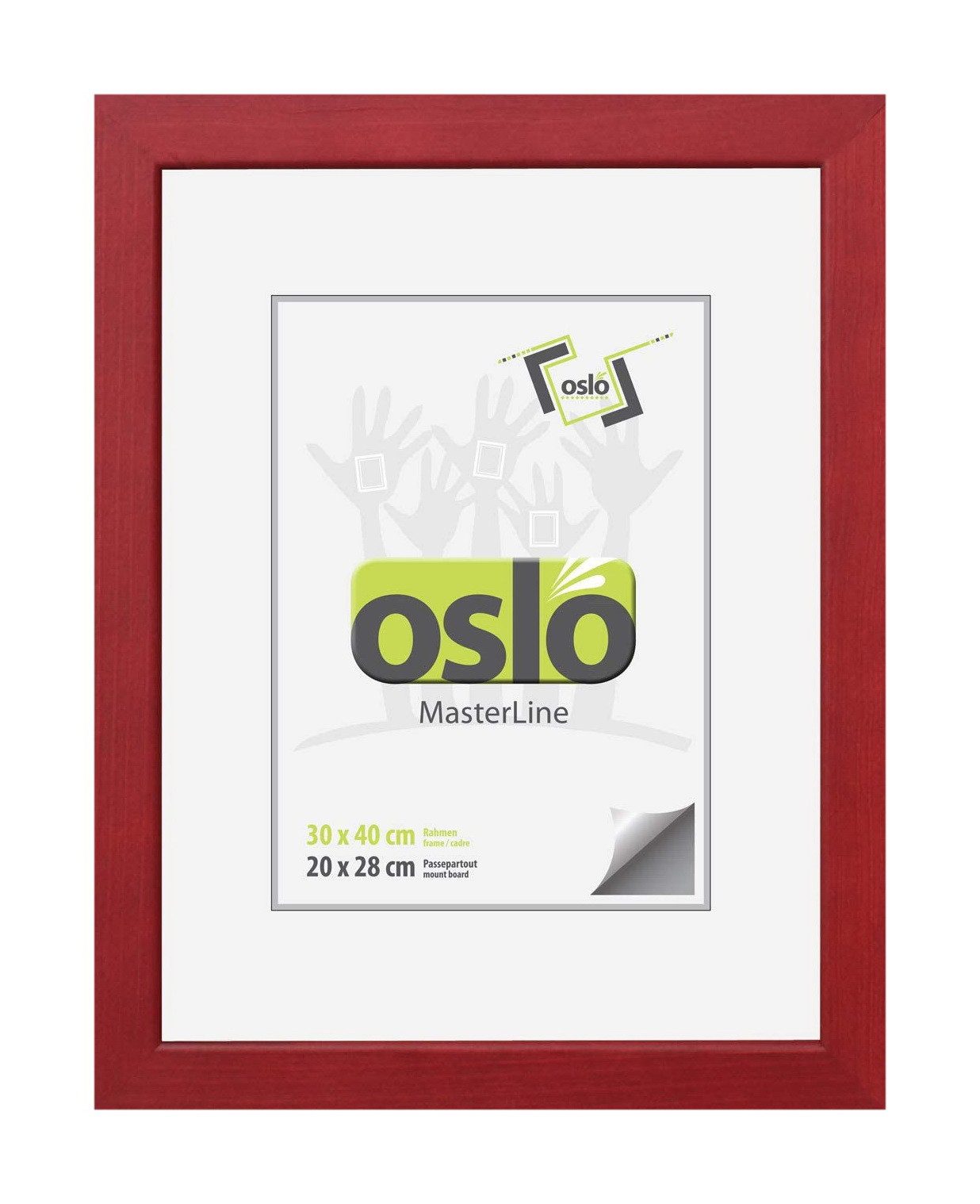 Der Bilderrahmen ist aus hochwertigem Massivholz gefertigt. Holzbilderrahmen zeichnen sich durch ihre einwandfreie Stabilität, Funktion und Langlebigkeit aus. Perfekte Verarbeitung, stabile Aufhängung und Aufsteller mit praktischem Verschluss-System sind weitere Vorzüge der OSLO MasterLine Holzrahmen. Ein moderner, schlichter Rahmen, der zu jedem Bild passt. Die Rückwand ist aus hochdichten Faserplatten hergestellt und FSC-zertifiziert. Die Rückwandbefestigung des Rahmens erfolgt durch ein Drehspannfedersystem. Das garantiert eine hohe Stabilität, und ein einfaches Auswechseln der Bilder. Ein Holzrahmen, bei dem Sie ganz einfach Ihre persönlichen Bilder auswechseln können. Einfach die Drehspannfedern öffnen, Foto, Bilder oder Urkunde hinter die Glasscheibe legen und den Wechselrahmen schließen – fertig! Sie benötigen kein weiteres Werkzeug. Der Einleger des Rahmens ist gestanzt, Sie können das vorgestanzte Innenteil herausdrücken und ein Foto von 20x28 Bildformat einlegen. Oder bestellen Sie ein richtiges Passepartout mit Schrägschnitt aus Karton. Das Bild liegt dadurch tiefer im Rahmen, das ist optisch viel schicker und wertet das Bild auf. Der Fotorahmen hat genug Spannkraft, um ein Passepartout bis 2,5 mm Kartondicke einzulegen. Wir bieten diesen Rahmen in 14 verschiedenen Formatgrößen 13x18 cm – 70x100 cm an. Bis zur Размер 21x30 sind die Bilderrahmen mit einem stabilen Aufsteller ausgestattet und können sowohl im Hochformat als auch im Querformat aufgehängt oder aufgestellt werden. Diesen Premium-Bilderrahmen führen wir in den Farben dunkelgrün – gold – silber – rot – weiß gekalkt – schoko und schwarz