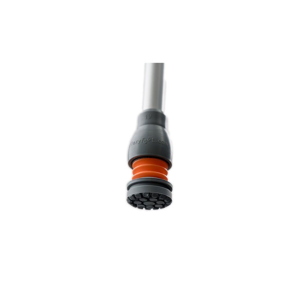 Flexyfoot ist ein innovativer Gummifuß für Gehstöcke. Er stellt sich automatisch auf den Winkel des Bodens ein, wodurch sich der Kontaktbereich der Laufflächen maximiert und der Halt stark verbessert wird.