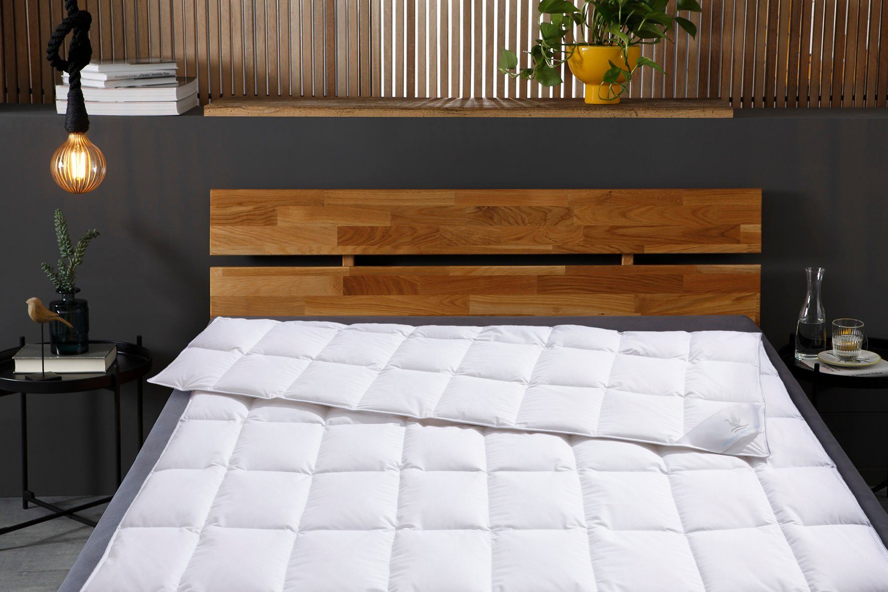 Materialzusammensetzung | Bezug: 100% Baumwolle. Füllung: 100% Daunen |