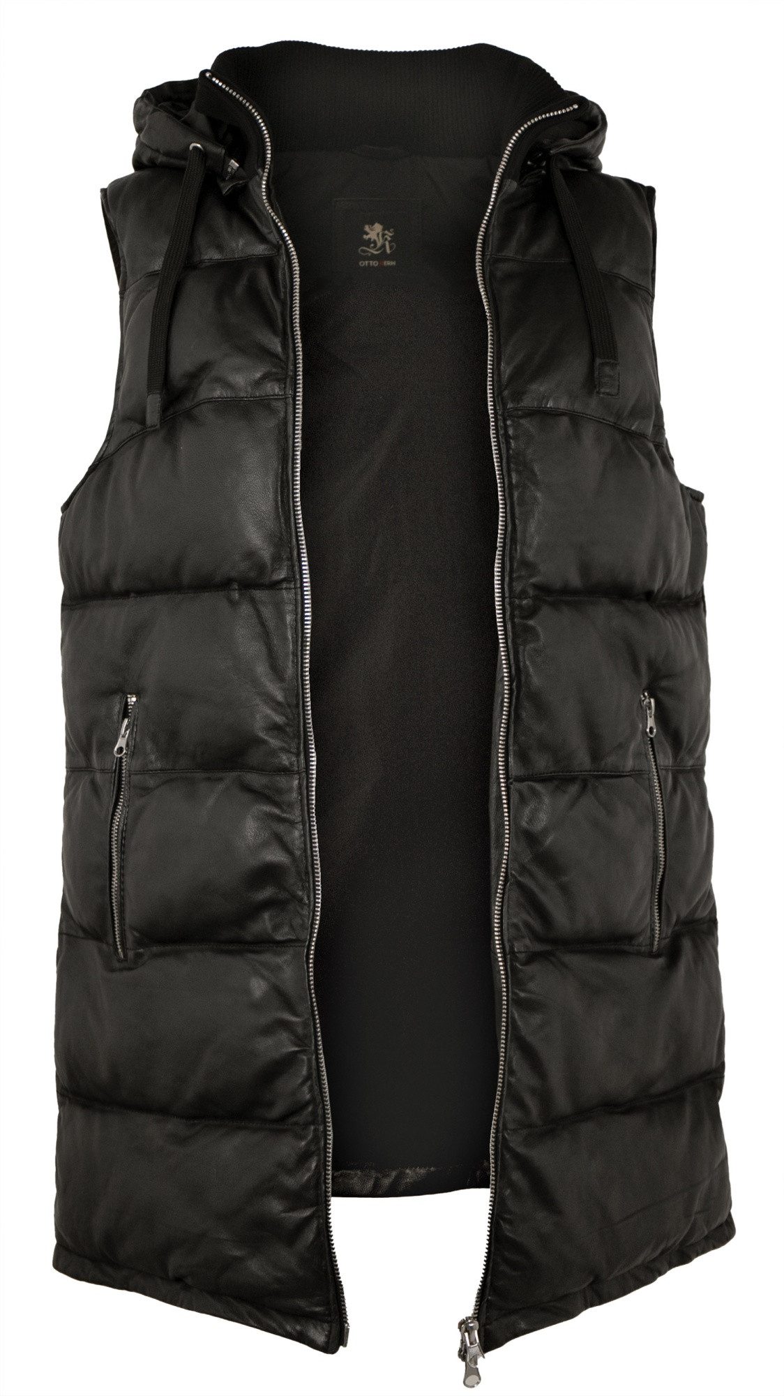 Besondere Merkmale | OTTO KERN - Damen Lederweste Steppweste Kapuze schwarz |