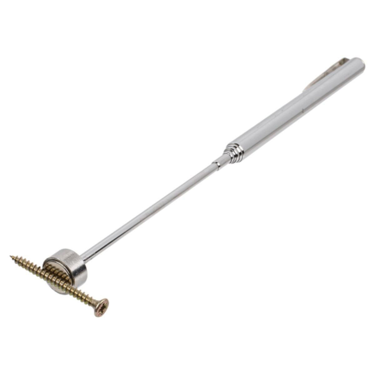 Heben Sie Ihre gewünschten Kleinteile aus schwer zugänglichen Ecken, Schächten oder Ritzen mithilfe von diesem handlichen und nützlichen Magnetheber mit Befestigungsclip. Dank des Magneten an der Spitze lässt sich der Heber problemlos für Gegenstände bis ca. 900 g verwenden. Der Magnet hat einen Durchmesser von ca. 1 cm und lässt sich dank des Teleskoparms auf bis zu 62 cm in die Длина ziehen. Zusammengeschoben hat der Magnetheber eine ähnliche Bemaßung wie ein Kugelschreiber und lässt sich daher praktisch in jeder Hose oder Jacke verstauen.