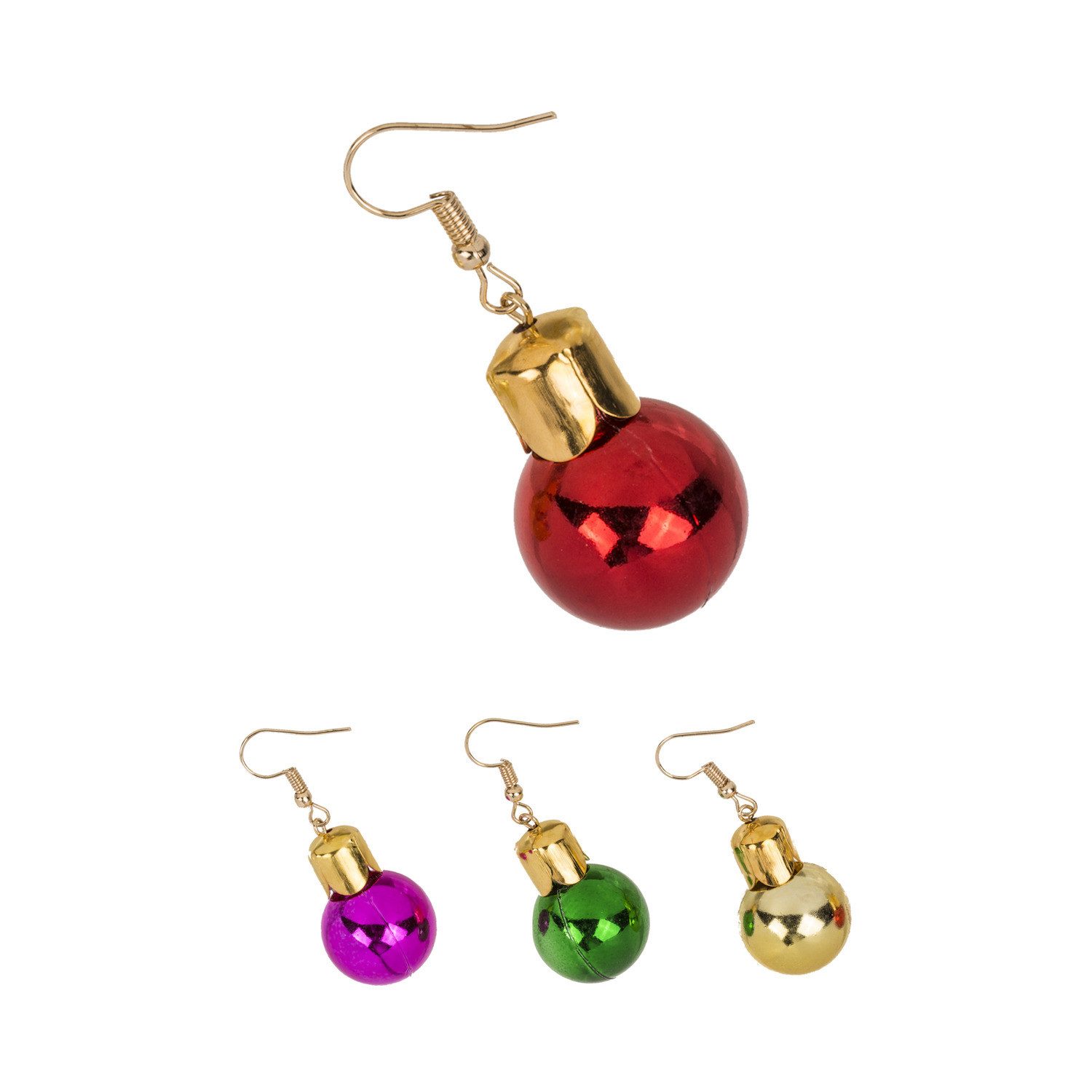 Diese Weihnachtskugel-Ohrringe sind ein echter Hingucker! Im 2er Set: erhalte eine von vier Farben - Grün, Rot, Pink oder Gold. Stilvoll und robust aus Kunststoff.