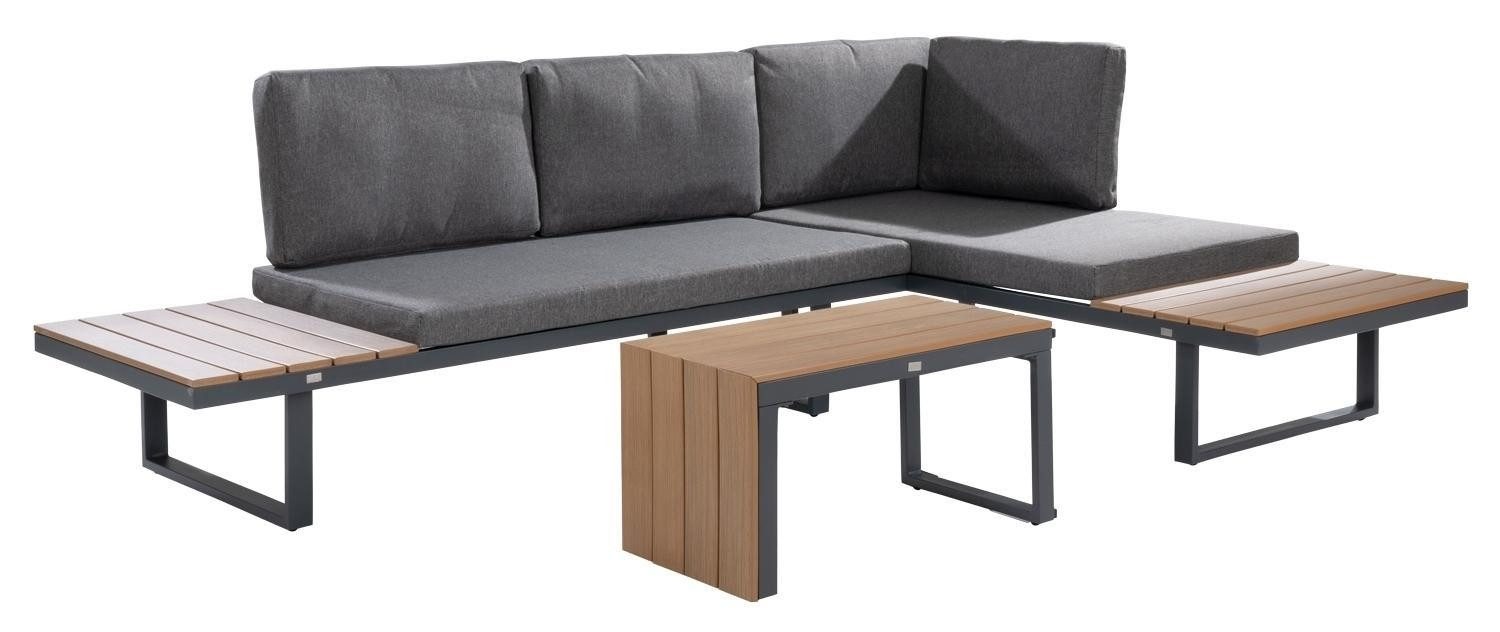Lieferumfang | 3-tlg. Gartenlounge bestehend aus 2 Zweisitzersofas, 1 Couchtisch, 2 Sitz- und 4 Rückenkissen |
