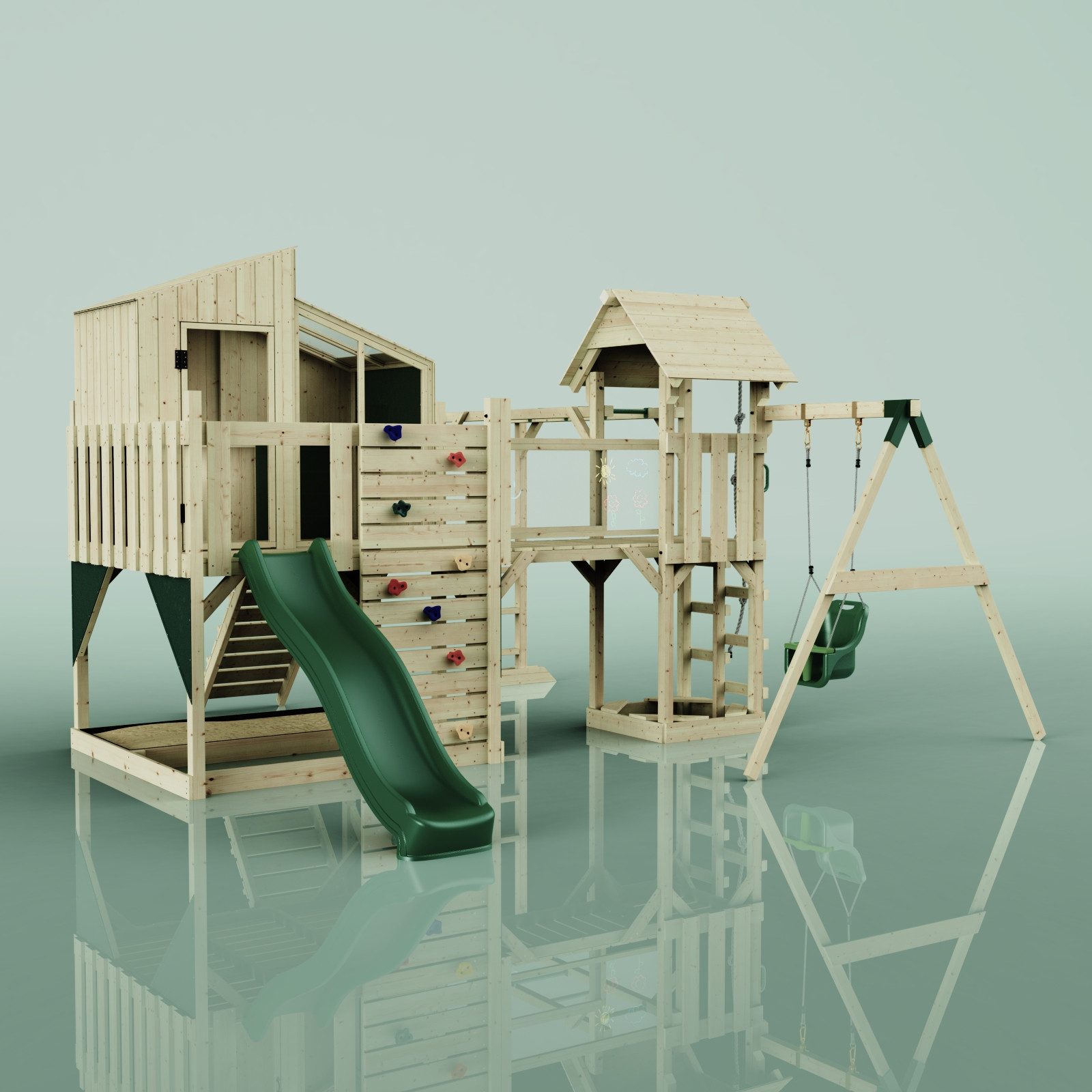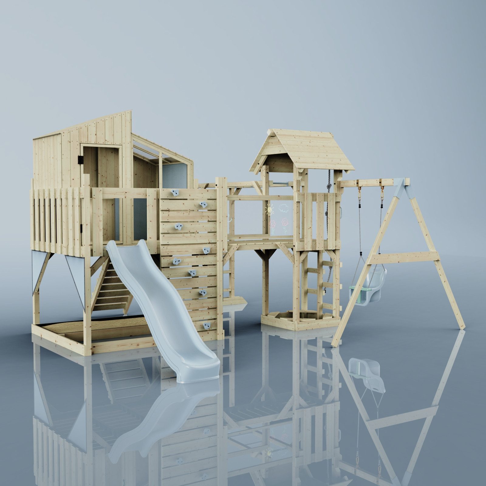 Verwandel deinen Garten in ein wahres Spielparadies mit dem Kinderspielturm „Liv“. Mit Spielhaus, einer Kletterwand, Rutsche, Schaukel und Brücke sorgt „Liv“ für stundenlange Unterhaltung.