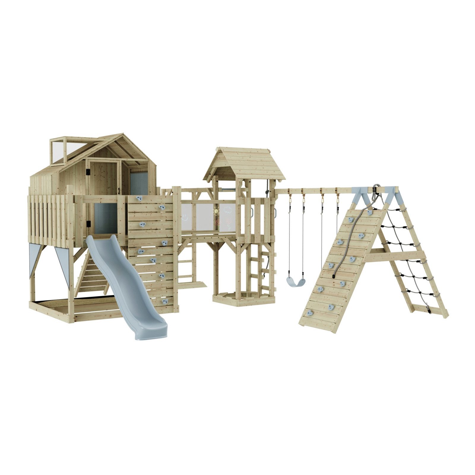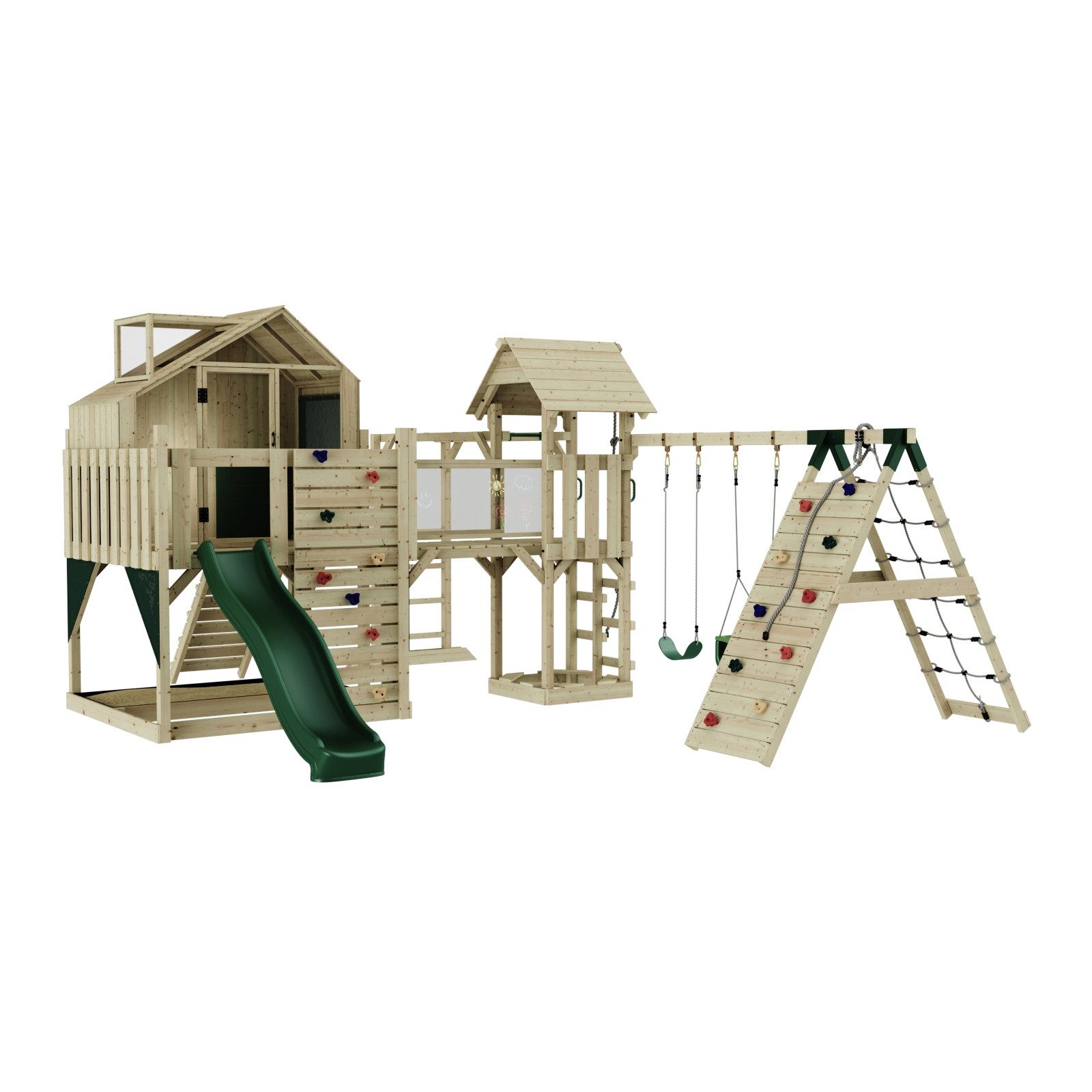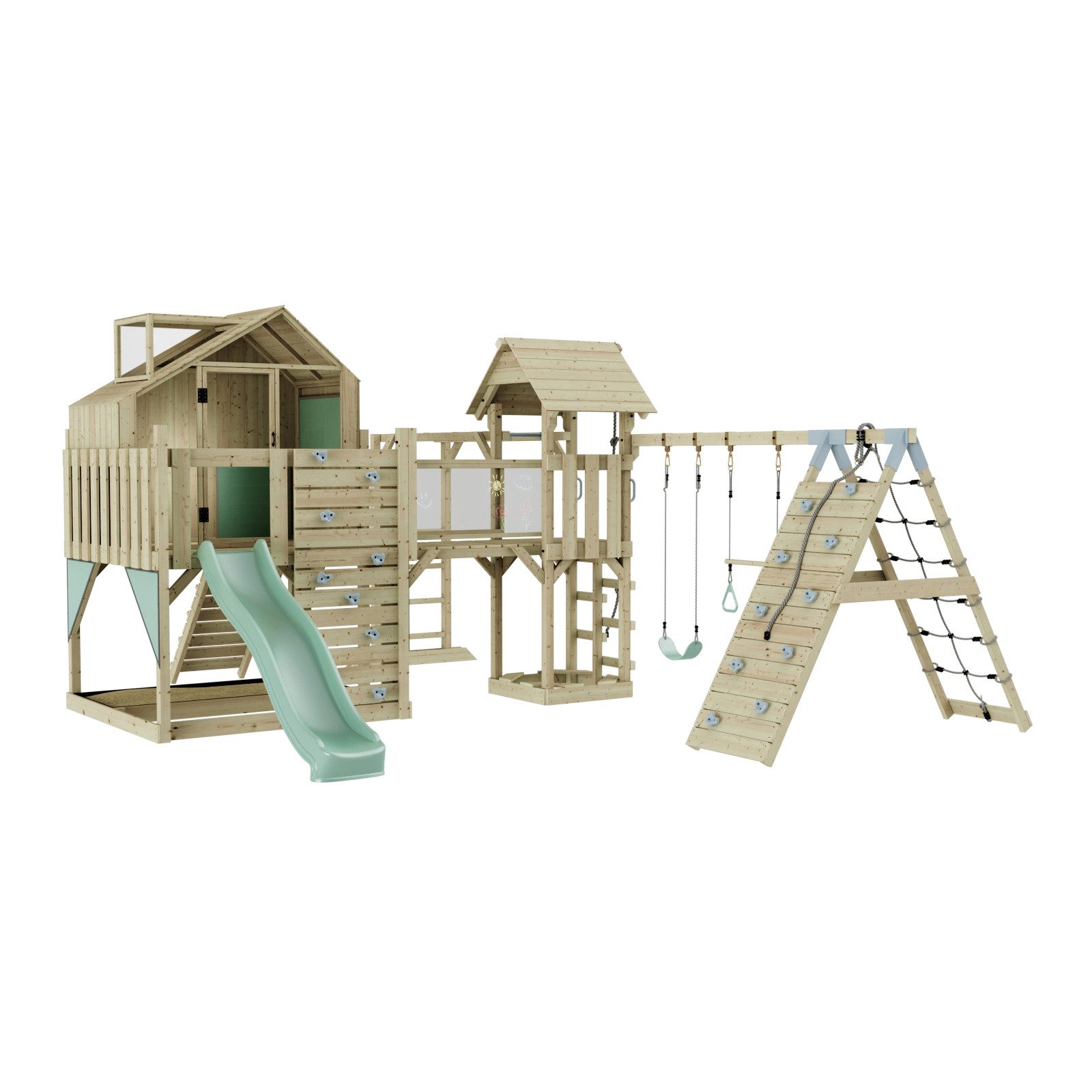 Der OutdoorToys Spielturms Milo verwandelt deinen Garten nicht nur in ein Spieleparadies, sondern auch in eine wahre Wohlfühloase. Das Spielhaus wird zum gemütlichen Rückzugsort, gleichzeitig bieten die Rutschen, Schaukeln und die Kletterwand endlose Möglichkeiten für aufregenden Spielspaß.