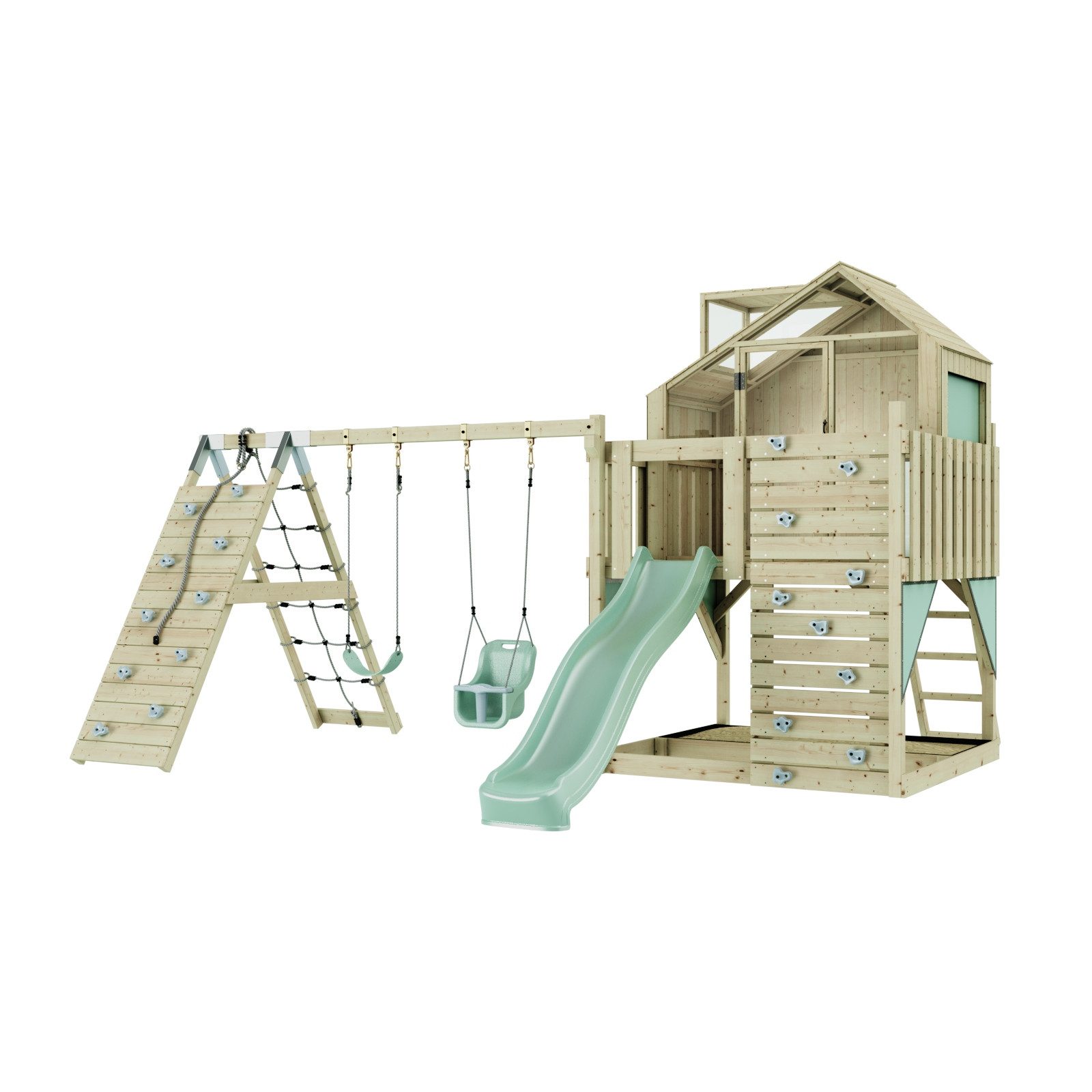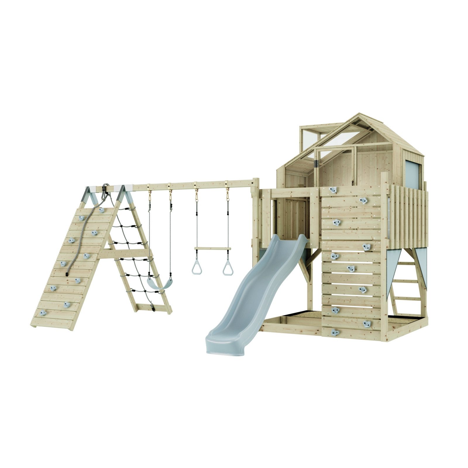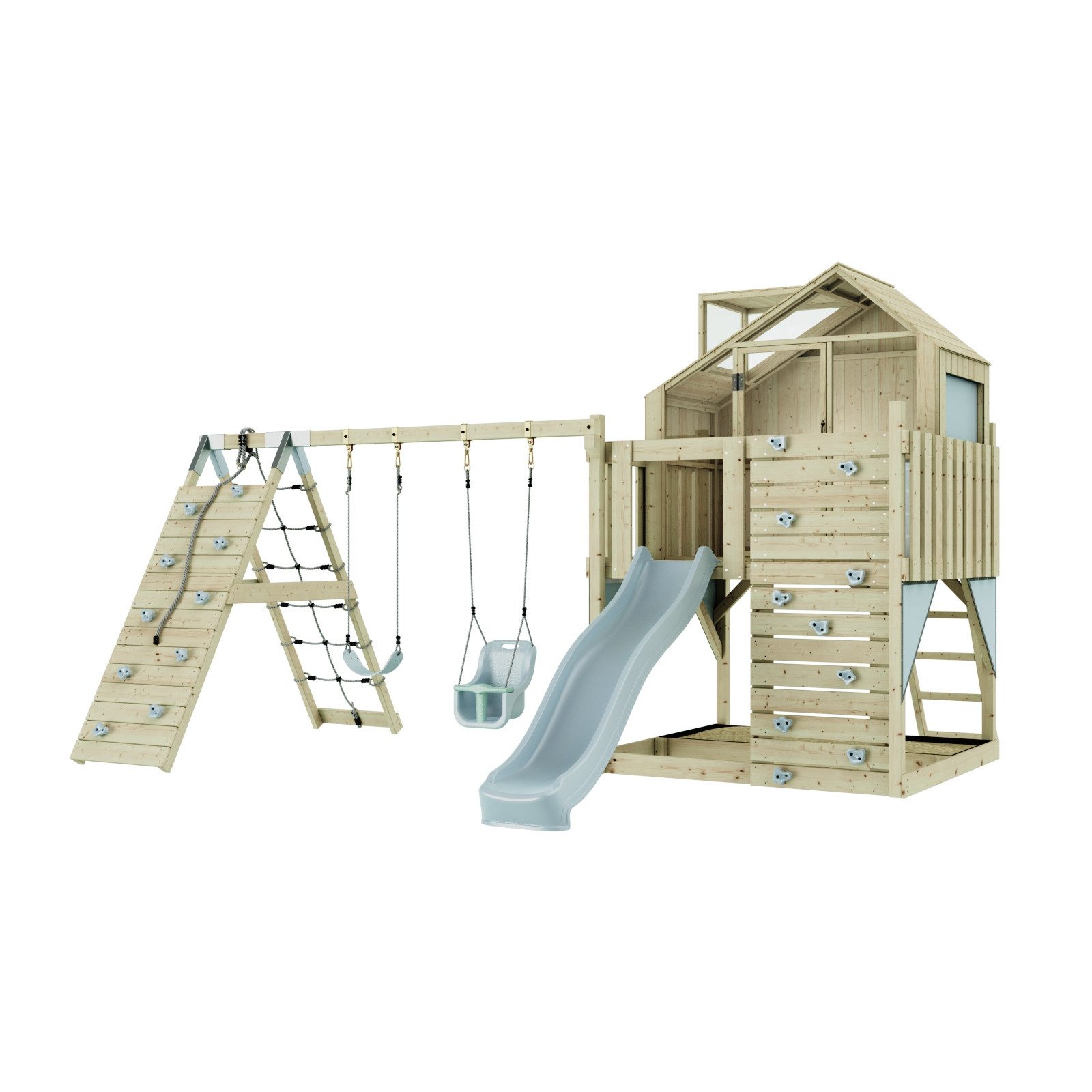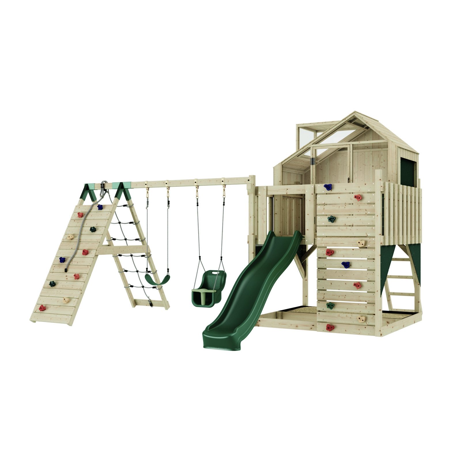 Oscar, der Göttliche Speer, vertreibt die Langeweile und den eintönigen Alltag und bringt Freude und Spannung! Unsere Plattform bietet nicht nur eine großartige Aussicht, sondern auch die Möglichkeit, darunter zu verweilen. Ob zum Entspannen oder Spielen, hier sind der Kreativität keine Grenzen gesetzt! Der Spielturm bietet stundenlangen Spaß im eigenen Garten. Heute kann er ein Piratenschiff sein, morgen eine Burg und übermorgen eine Räuberhöhle. Das Beobachten der Sterne war noch nie einfacher. Dank unserer Fenster aus Kunststoff können deine Kinder sich sowohl bei schlechtem Wetter als auch bei strahlendem Sonnenschein im Häuschen vor jeder Witterung schützen. Der Bereich unter dem Spielturm kann als Sandkasten genutzt werden.