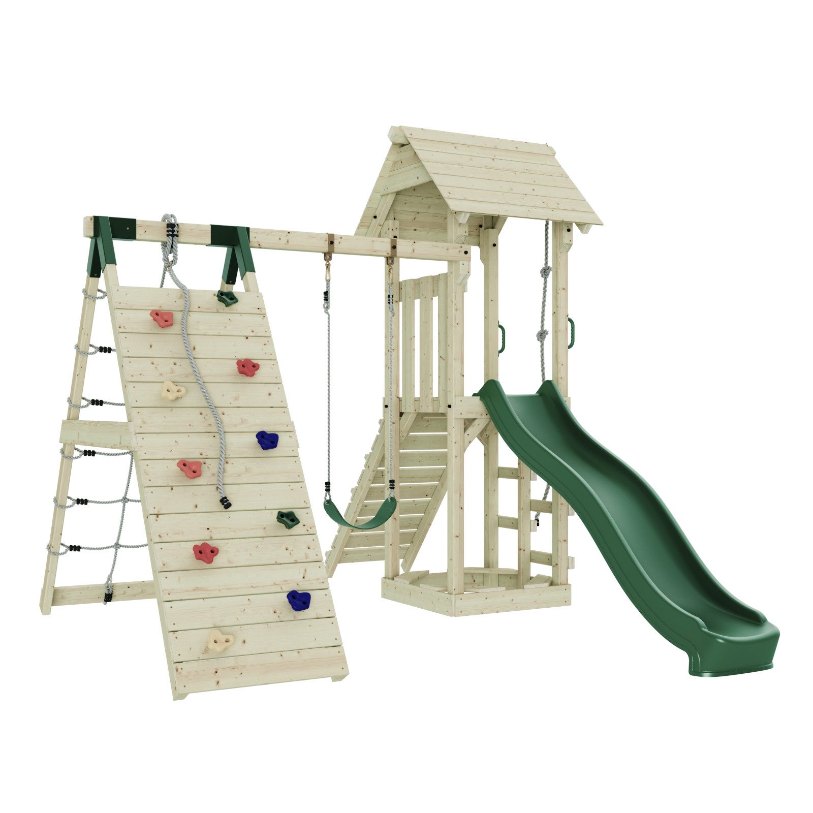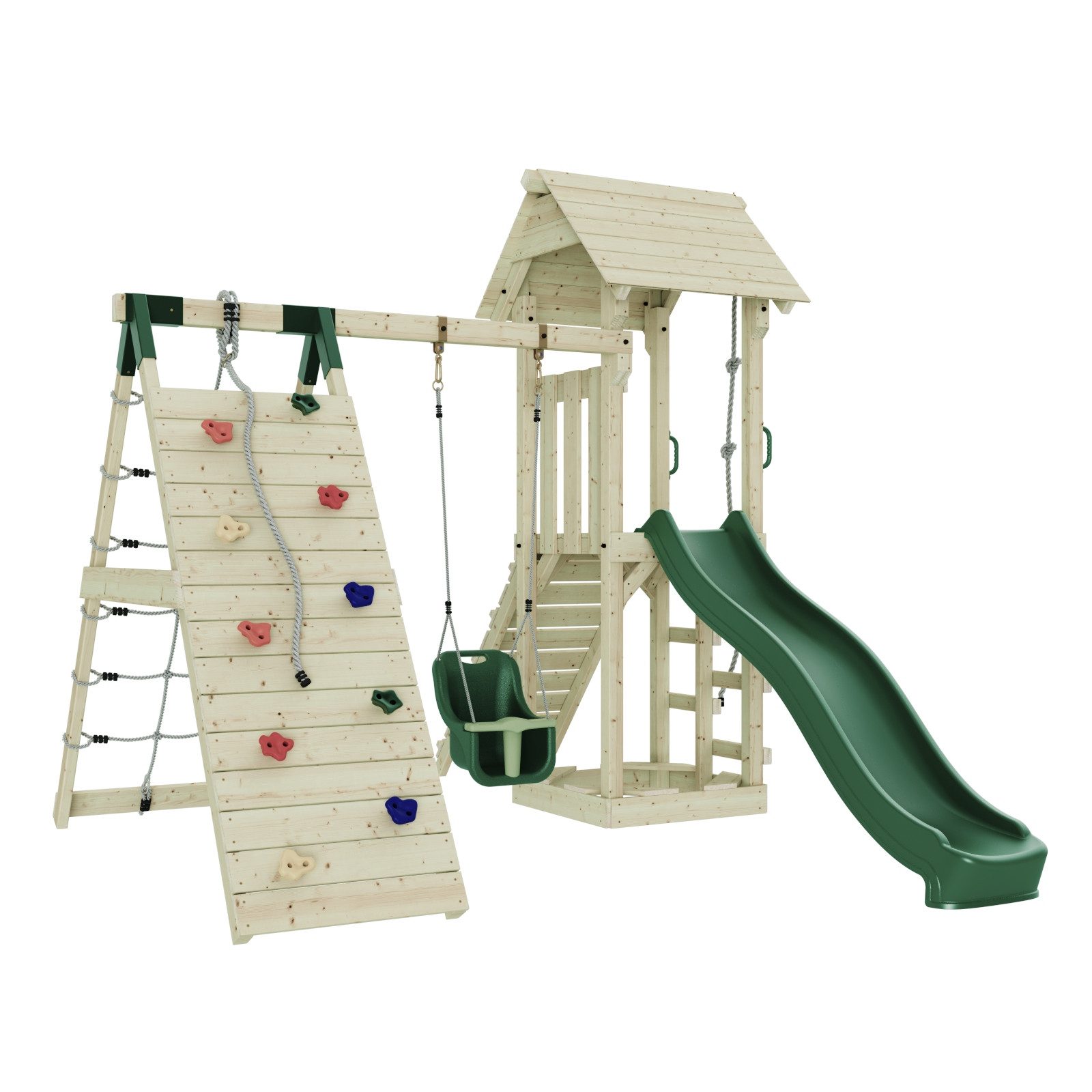 Der Spielturm Trondheim ist so vielseitig wie die Stadt selbst und macht damit seinem Namen alle Ehre. Er bringt grenzenlosen Spielspaß in den Garten und kann dank seiner vielen Spielmöglichkeiten von mehreren Kindern gleichzeitig bespielt werden.